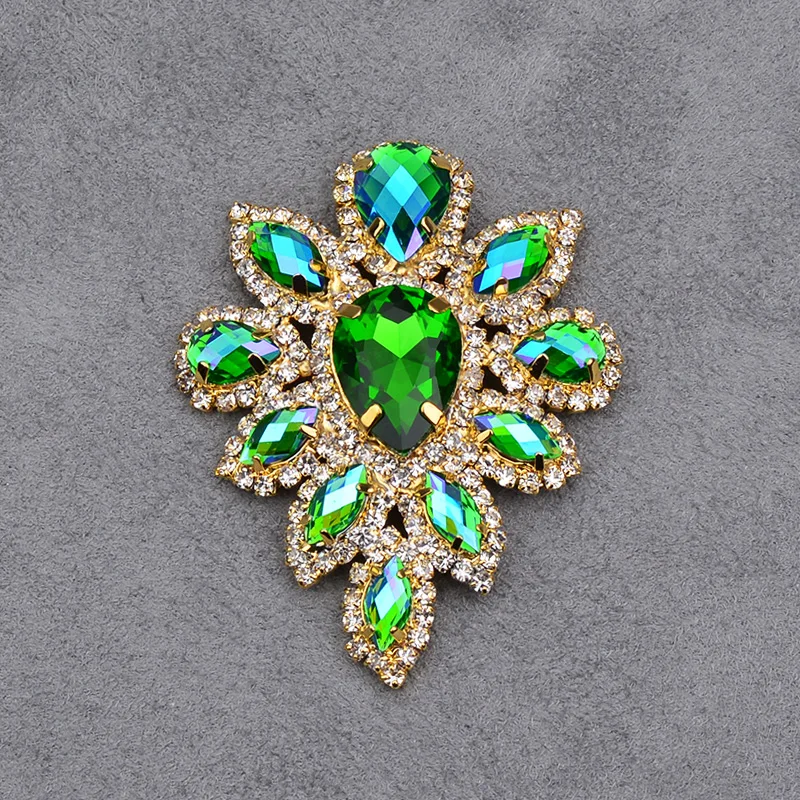 JUNAO 2 шт 45*59 мм вышитые зеленые кристаллы AB цветы стеклянные стразы