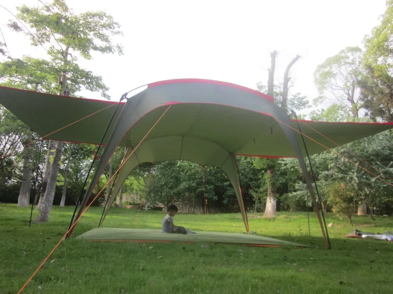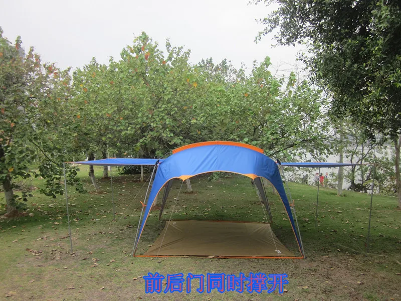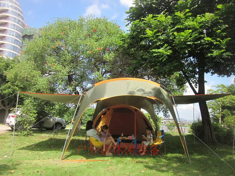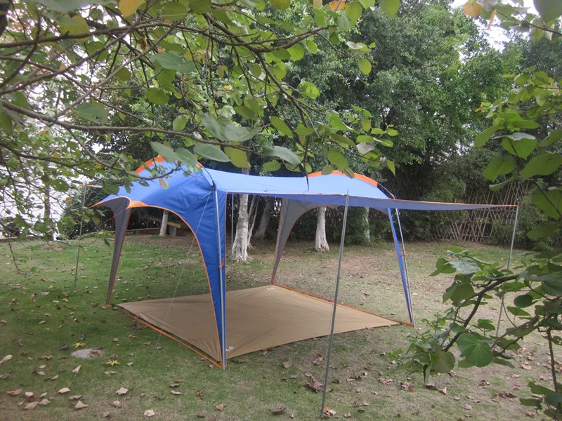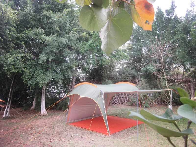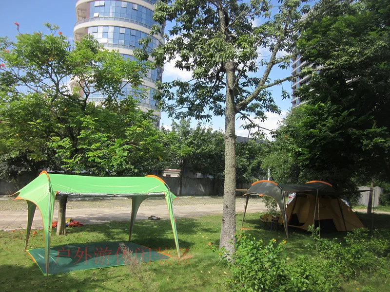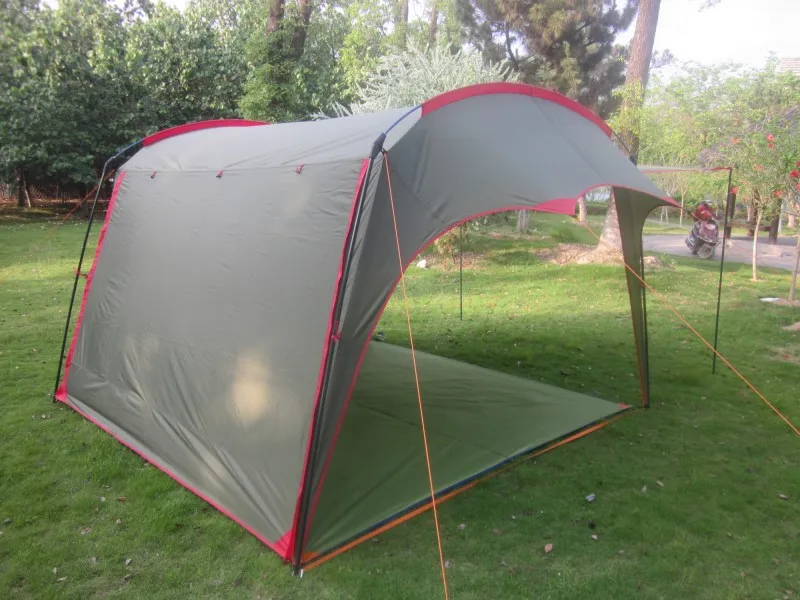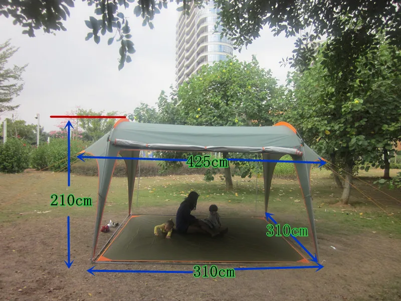 Размер: 425*310*210 см Аксессуары: 4 * утюги, 2 * волоконные стержни, 2 пары штор, нижний коврик, ветряные веревки, гвозди, 1 сумка для переноски. Размер упаковки: 65*17*17 см Материал: полиэфирная ткань 150 D/УФ-защита 1500 мм.