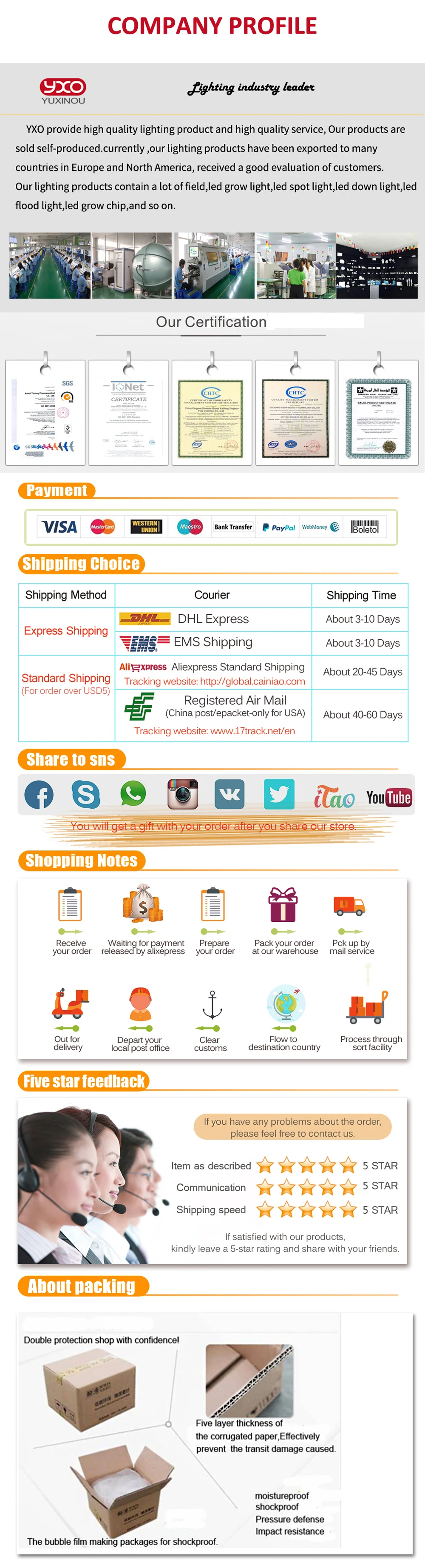 5. Светильник: теплый светильник 3500K (если вам нужен другой цвет, например 3000K или 5000K, пожалуйста, оставьте нам сообщение)