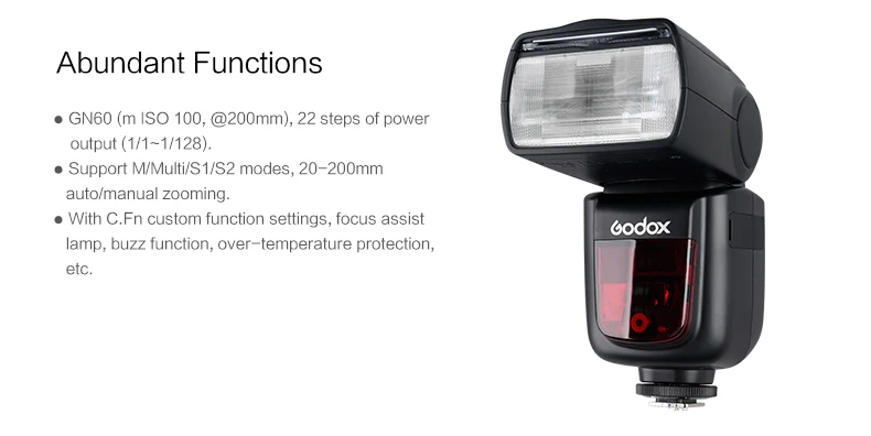 4. Множество функций - -GN60 (m ISO 100, @ 105 мм), 22 шага выходной мощности (1/1 ~ 1/128)