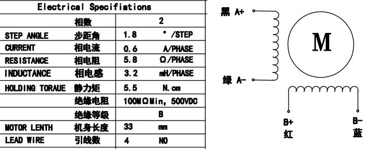 The dimension and wiring of dual hollow shaft stepper motor nema 11: