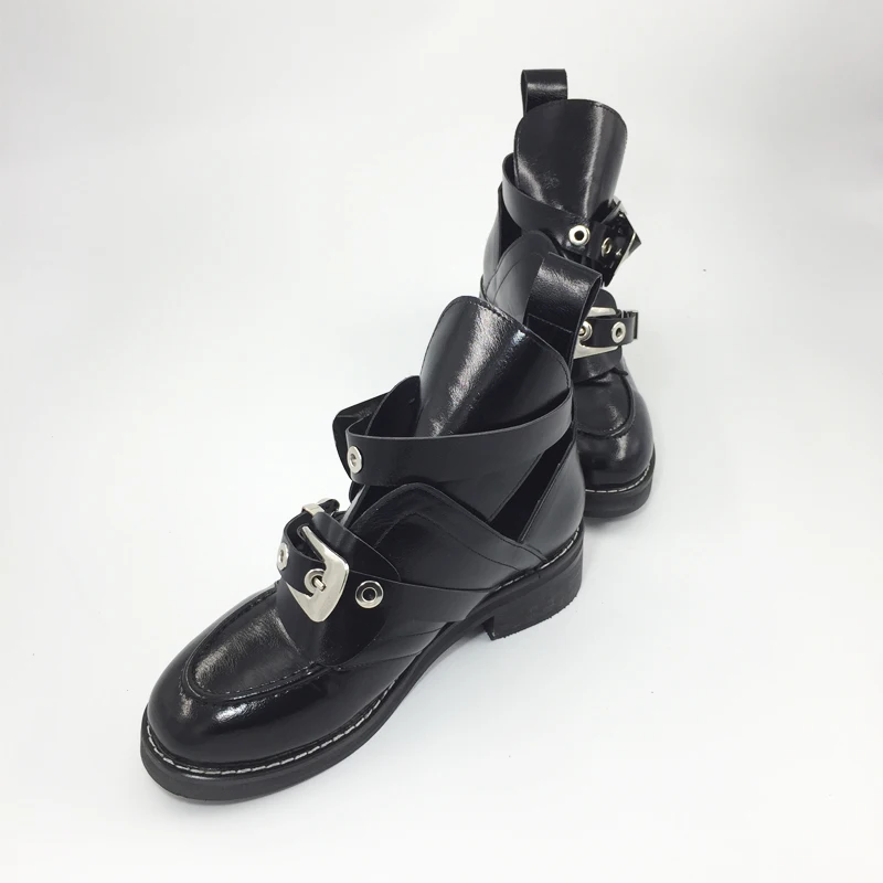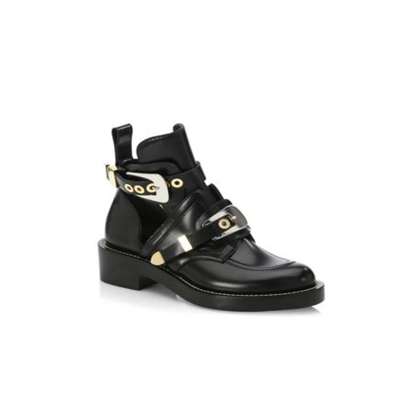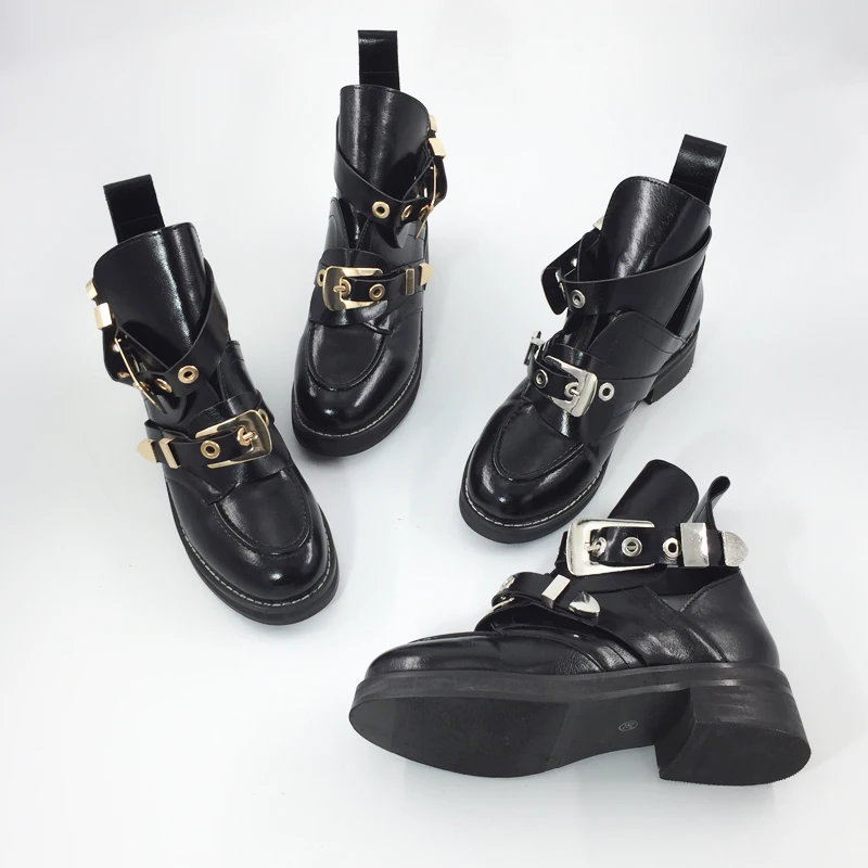 Женские кожаные ботильоны с пряжкой черные золотистые серебристые