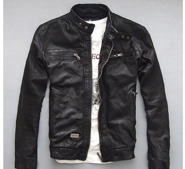 Мужская винтажная куртка на молнии Черная байкерская из искусственной кожи с