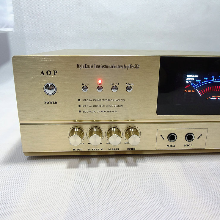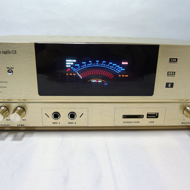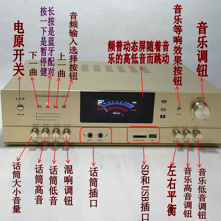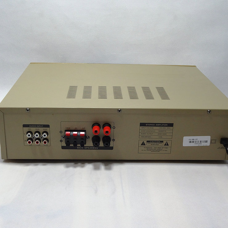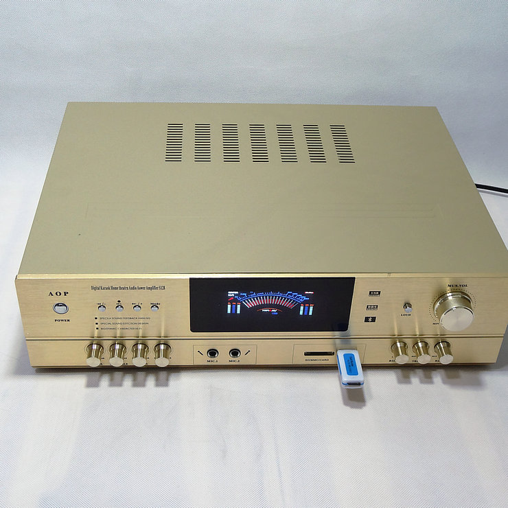 Выходная мощность: 300 Вт + 300 Вт Размеры: 43X32X11.5cm Вес: чистая Вес 6,5 кг Сопротивление: 8 Ом Способ приема Bluetooth: Сначала нажмите усилитель мощности в режиме, перейдите к USB, затем нажмите усилитель мощности на «приостановить Здоровье», услышать бум динамика, вы можете перейти к телефону в паре Bluetooth.