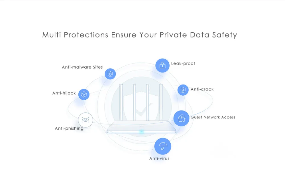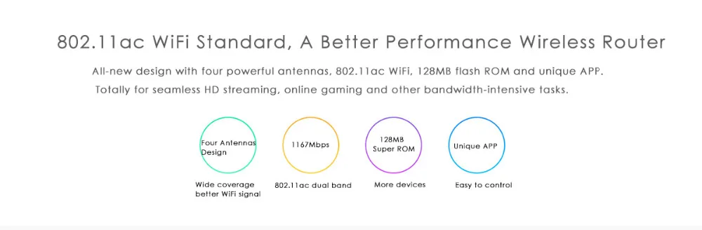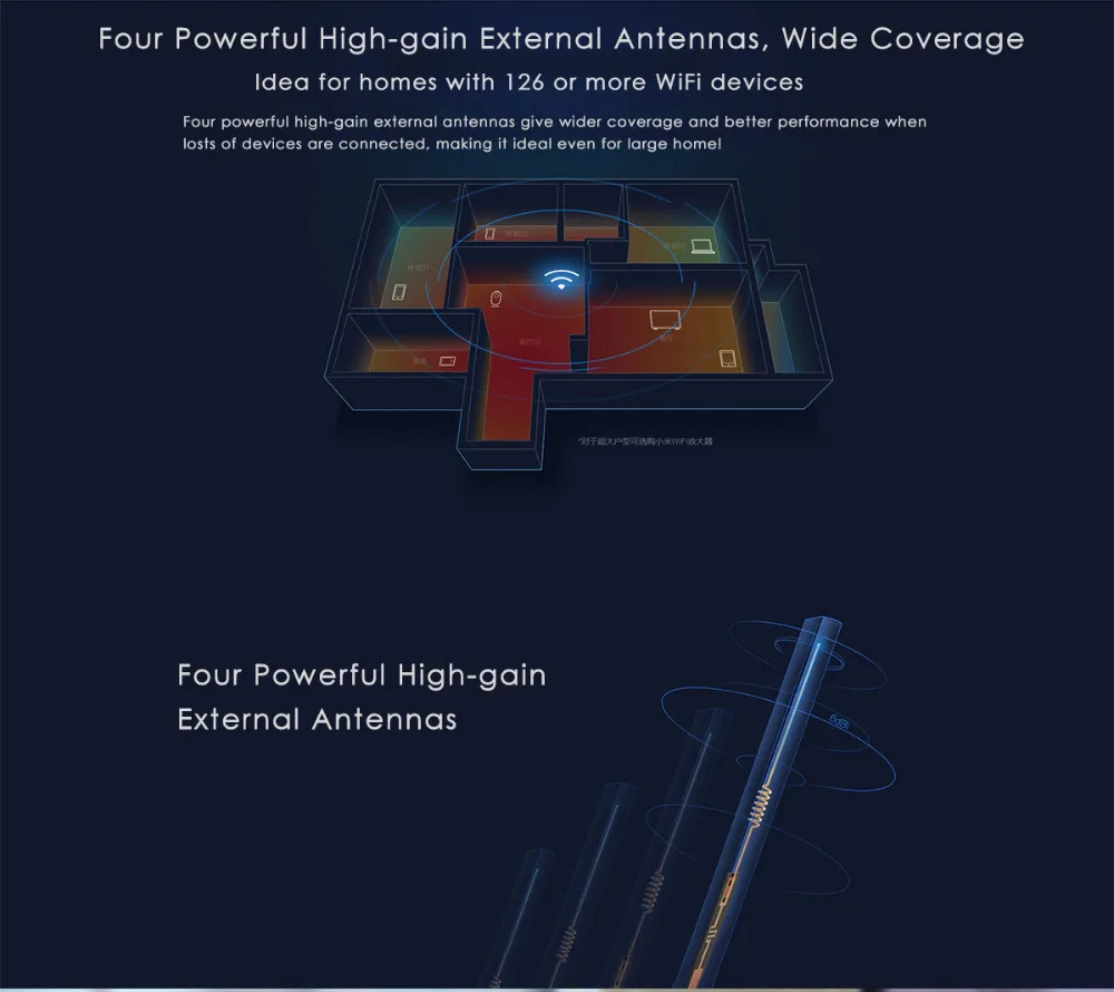 Наслаждайтесь плавным потоком HD и онлайн-играми с этой высокой производительностьюОригинальный Xiaomi Mi WiFi двухдиапазонный беспроводной маршрутизатор 3. Он поставляется с новейшей технологией 802.11ac WiFi, которая в 3 раза быстрее, чем Беспроводная скорость N и обеспечивает комбинированную скорость беспроводной передачи данных до 1167 Мбит/с. 867 Мбит/с Беспроводной скоростях над crystal clear 5 ГГц группа и 300 Мбит/с по 2,4 ГГц, двухдиапазонный беспроводной маршрутизатор Wi-Fi Xiaomi mi 3-это превосходный выбор для бесшовных HD strea mi ng, онлайн ga mi ng и других задач с высокой пропускной способностью. Кроме того,Четыре мощных внешних антенны с высоким коэффициентом усиленияОбеспечьте более широкий охват и лучшую работу при подключении множества устройств, что делает его идеальным даже для большого дома!