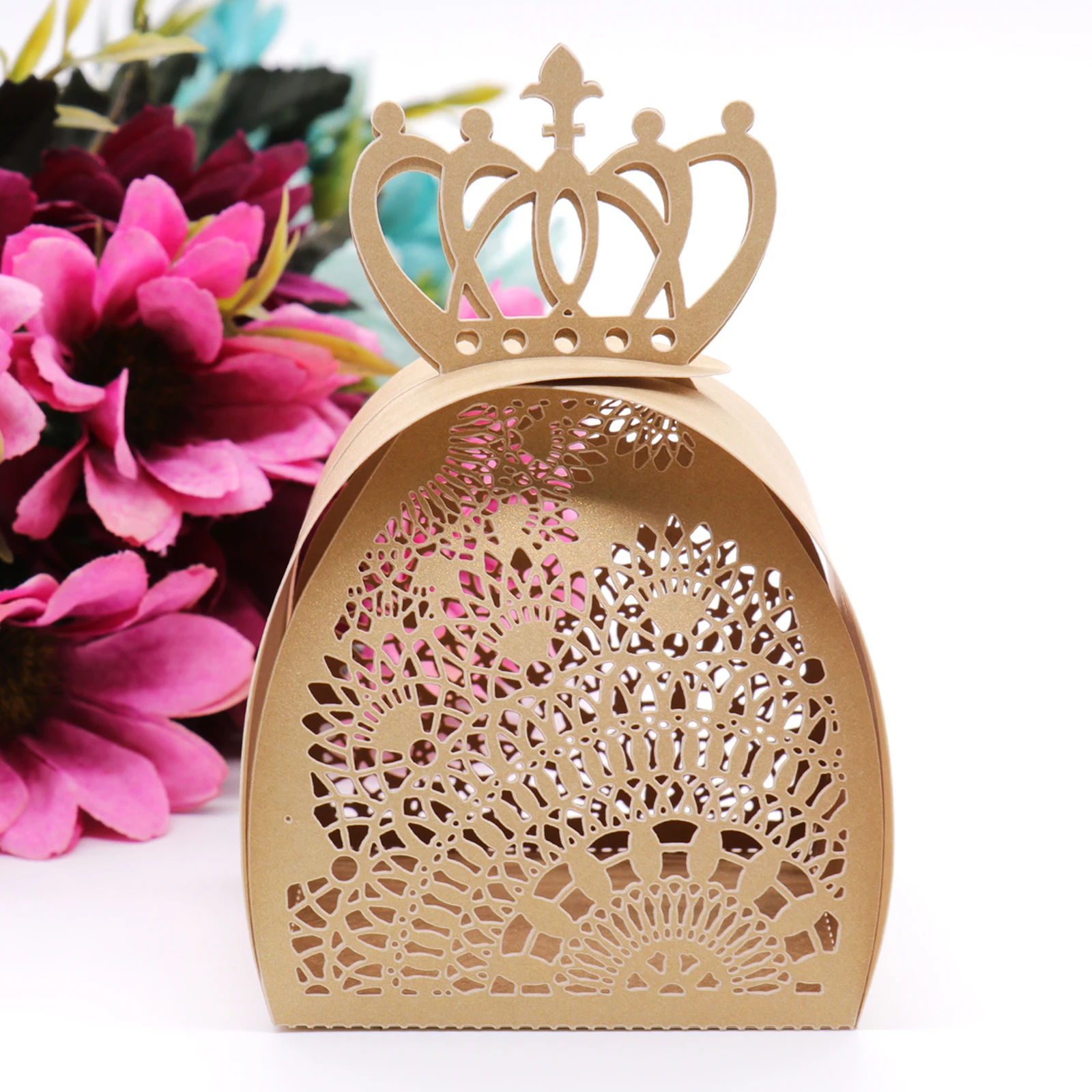Посылка включает в себя: 10 конфетных коробок Цвет: бежевый, розовый, синий, лавандовый, золотой Размеры: 5x6x9cm Материал: бумага Узор: дизайн с полой короной Идеально подходит для свадьбы, дня рождения, вечерние мероприятия, праздника Внимание: 1. Замеры сделаны вручную, поэтому возможны 0,5 ~ 1 см; Она вполне допустима при данных измерений. 2. В связи с использованием разных из-за угла съемки и съемки светильник вас принять во внимание тот факт, быть небольшая Хроматическая аберрация.