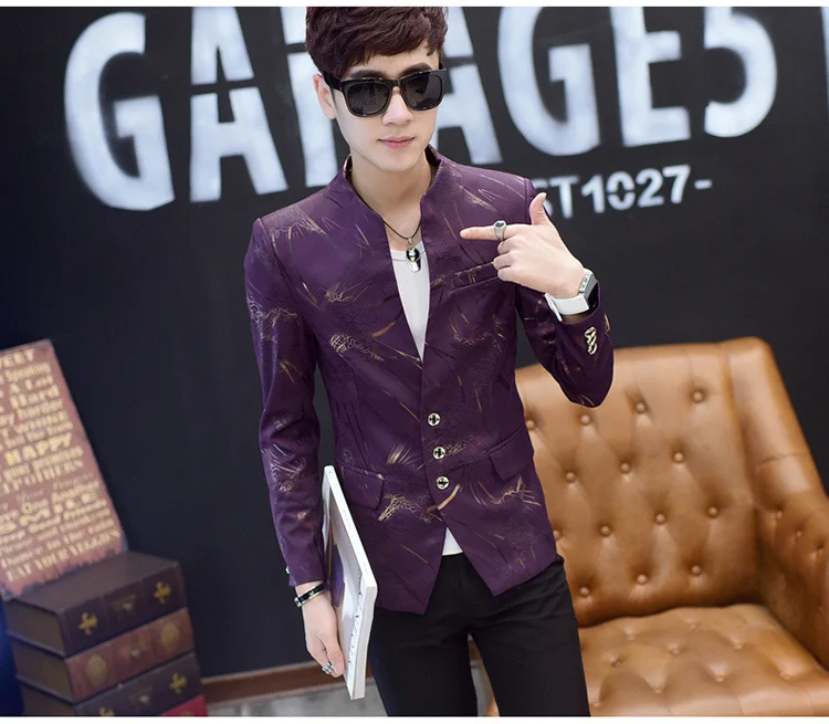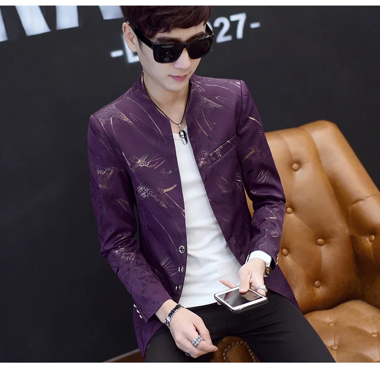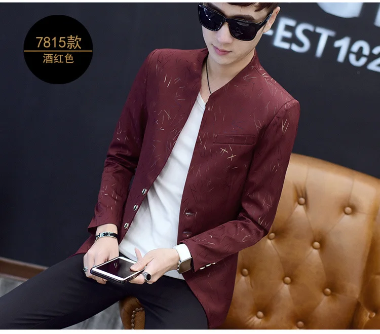 Модный мужской повседневный Блейзер на одной пуговице приталенный пиджак
