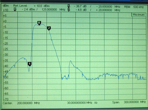 Охват полосы пропускания авиационного диапазона связи, эффективно устраняет помехи от волн, длинных волн, FM fm-радио и телевизионных сигналов. Ультра-Низкая потеря вставки, максимальная мощность 5 Вт, используется для выходного фильтра передатчика низкой мощности. Модель: KFBP-118/136 Сопротивление системы: 50 Ом Центральная частота: 127 МГц Потеря вставки центральной частоты: <3 дБ Полоса пропускания 3 дБ: 118 ~ 140 МГц Максимальная мощность нагрузки: 5 Вт (37 дБм) Диаграмма частотного отклика: