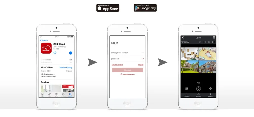 Простой удаленный доступ к просмотру записей с камер с помощью бесплатного приложения "Zosi Cloud" или клиентского программного обеспечения, просто подключите беспроводной NVR к маршрутизатору.