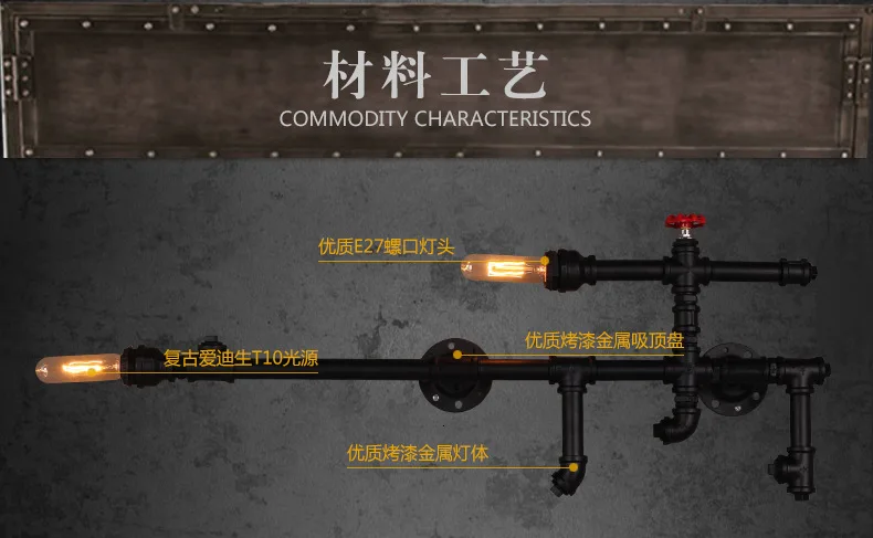 Промышленный настенный светильник в стиле ретро с железной трубой E27