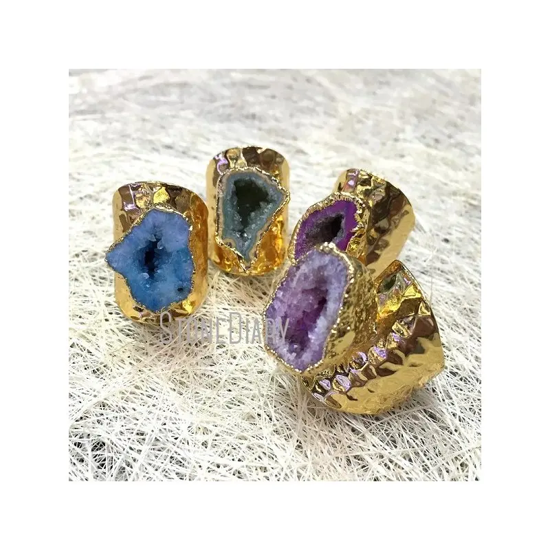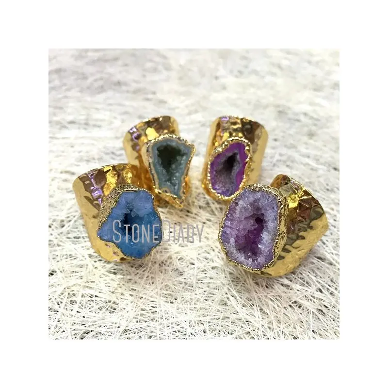 RM337 позолоченное кольцо свободной формы случайный цвет Агаты Жеода Друза кольцо зазор регулируемый