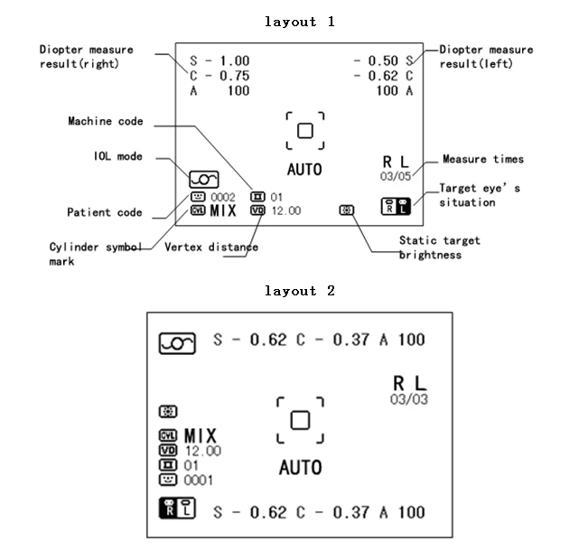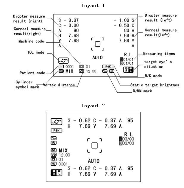 Модель измерения | K & R режим | Измерьте диоптрию и кривизну роговицы |