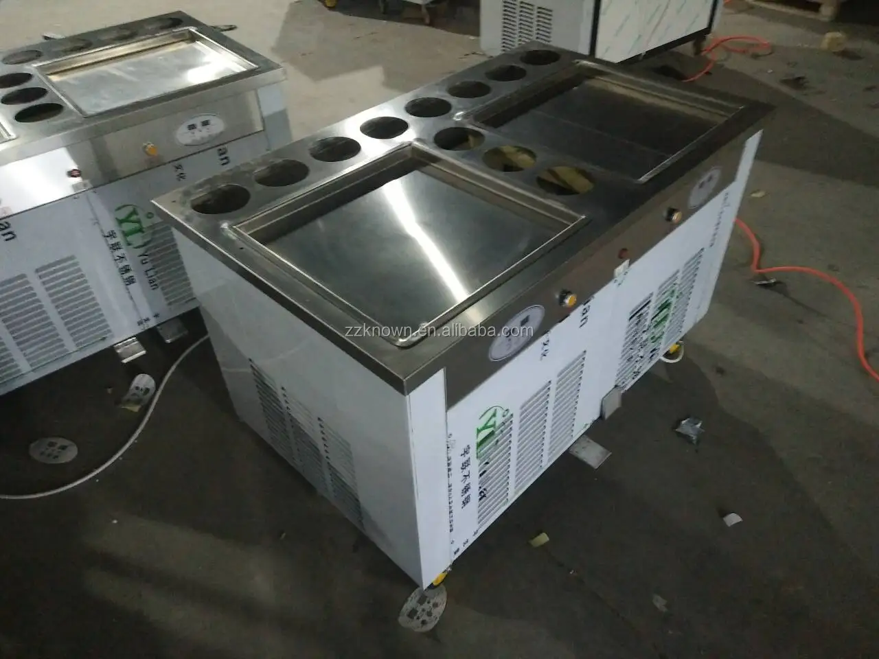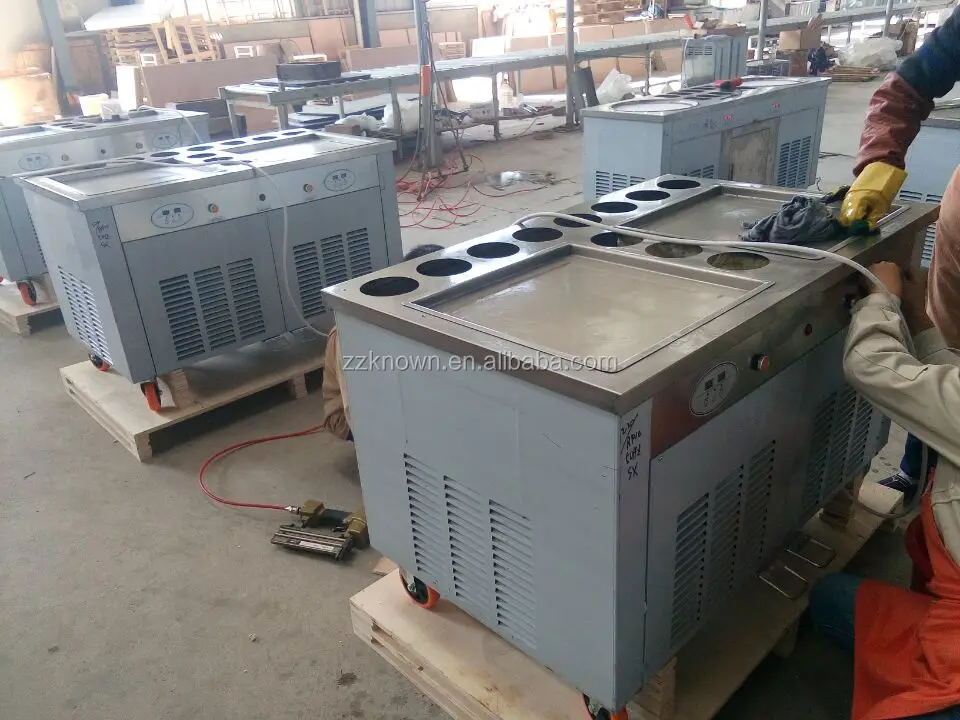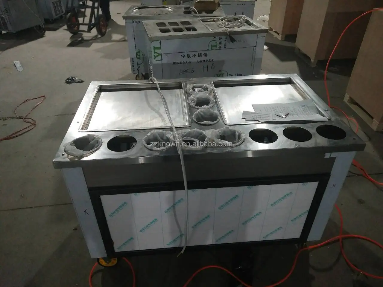 Машина для приготовления мороженого в рулонах, машина для приготовления жареного мороженого на плоской сковороде --- фотографии: