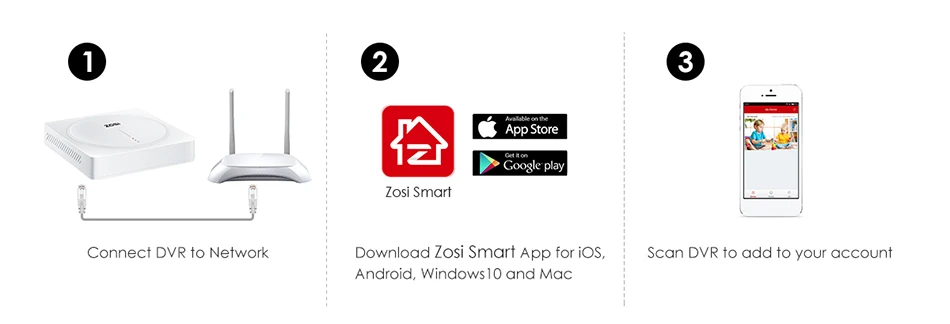 Просматривайте видео в режиме реального времени и транслируйте записанное HD видео на свой телефон. Приложение Zosi Smart будет у вас под рукой за 3 простых шага.