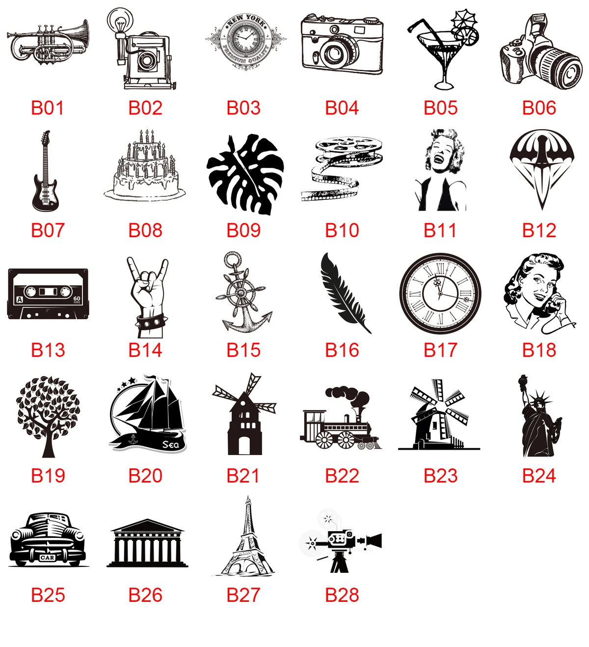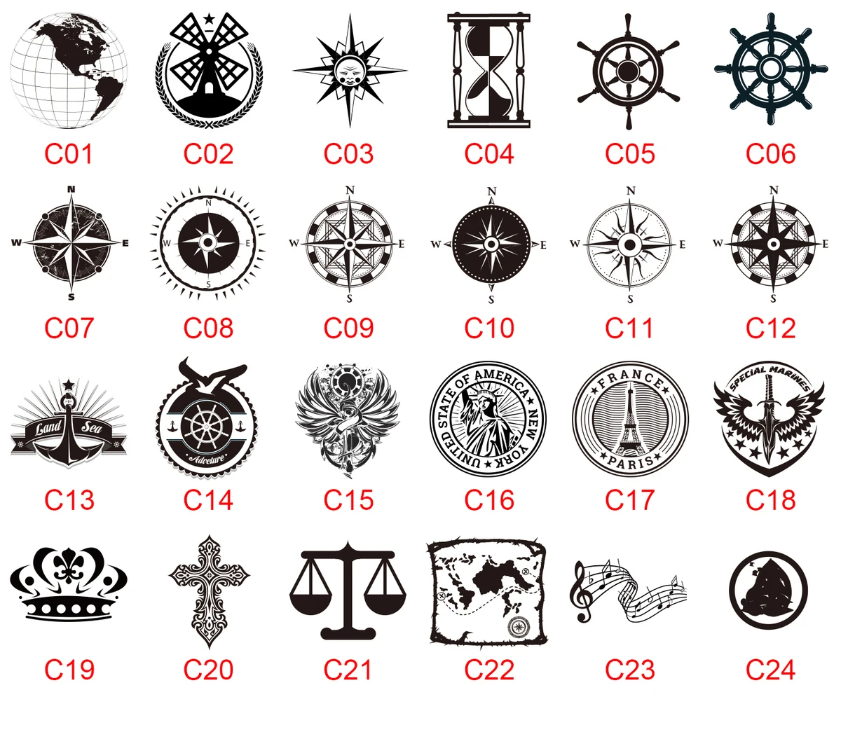 Дополнительная плата: такая же, как простая гравировка. Только Выгравированный рисунок составляет 2 доллара США каждый. Сочетание рисунка и символов составляет 3 доллара США каждый.