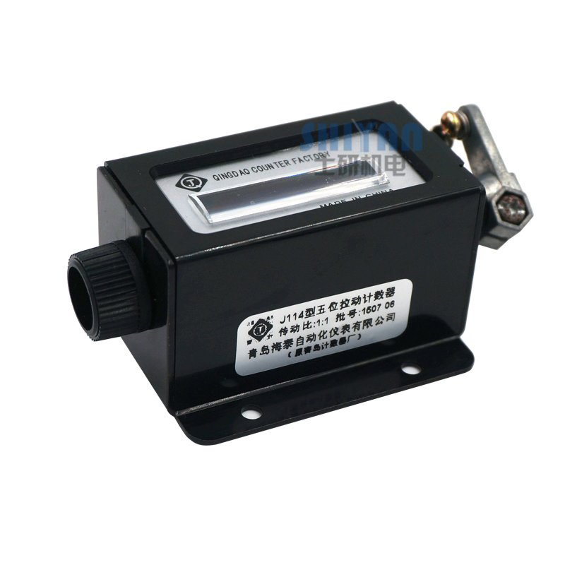 Working principle and introduction: The J114 counter is used to accumulate the number of times the recording instrument or machine reciprocates. Connect the counter's input shaft to the instrument or machine by pulling it on the arm. Digital direct reading display, and there is a rotary zero return device. After zeroing, it is still possible to count up from zero. J114 counter is mainly used in textile, machinery, circuit breakers, mines and other industries. Display digital specifications: height × width 4.4 mm × 3 mm Working temperature: -10°C~+50°C Maximum total capacity: 99999 Transmission ratio: 1:1 Counting speed: ≤500 beats/min Pulling angle: maximum pulling angle 43o, minimum pulling angle 38o Torque: ≤8 N·cm