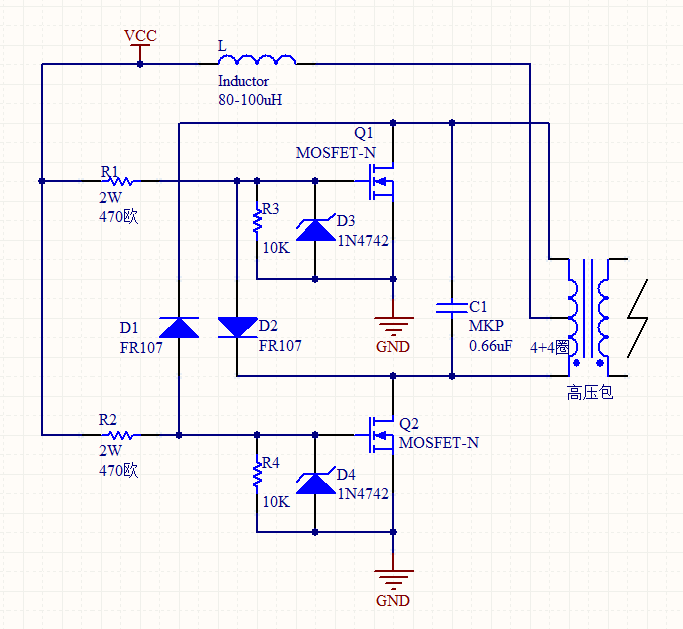Это схема обратного привода, разработанная иностранцем для привода высоковольтной посылка. Он был назван «ZVS» отечественными энтузиастами из-за переключения нулевого напряжения (переключение нулевого напряжения). Из-за своей большой мощности, низкого тепла, простой и надежный, энтузиасты широко используются для привода spark gap Tesla coil (SGTC) и Jacob ladder, генератора Marx и других устройств. Схема привода ZVS, представленная Marvel Studio, использует высококачественные компоненты для высокой надежности и мощности. Вход 12-24 В постоянного тока, вы можете использовать импульсный источник питания, свинцовый аккумулятор или литиевый аккумулятор, вы также можете использовать трансформатор после источника питания фильтра выпрямителя, емкость фильтра не менее 10000 мкФ. Выходное Высокое напряжение постоянного тока. Входное напряжение 12 В выход 10000 в Тяговая дуга около трех сантиметров Входное напряжение 24 В выход около 2000 в дуга около 5 см Источник питания 12 В обычно составляет около 50 Вт, и он может работать непрерывно. Мощность источника питания 24 В составляет около 100 Вт, и посылка высокого напряжения нагревается в течение длительного времени. Чем дольше дуга, тем больше мощность, тем быстрее генерируется тепло. Компоненты, используемые в этой схеме привода, совершенно новые и оригинальные, и никогда не будут вырезаны углы. В отличие от некоторых продавцов, которые режут углы и железные кольца, они также находят повод сказать, что Ферритовое кольцо легко насытить. Монтажная плата двусторонняя, и вся задняя сторона используется в качестве следа резонансной цепи. Сопротивление небольшое и тепло низкое. Хорошая теплоотдача, отличная производительность не сравнима с одной панелью. Демо-видео (24V вход):