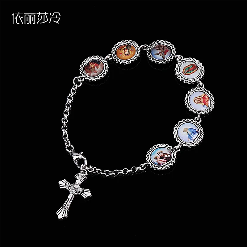 Крест Иисуса браслет Священное Сердце Иисуса ювелирные изделия Центральная Розария милость святая религиозная икона бисерный браслет. Двусторонняя
