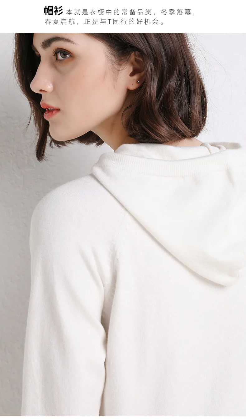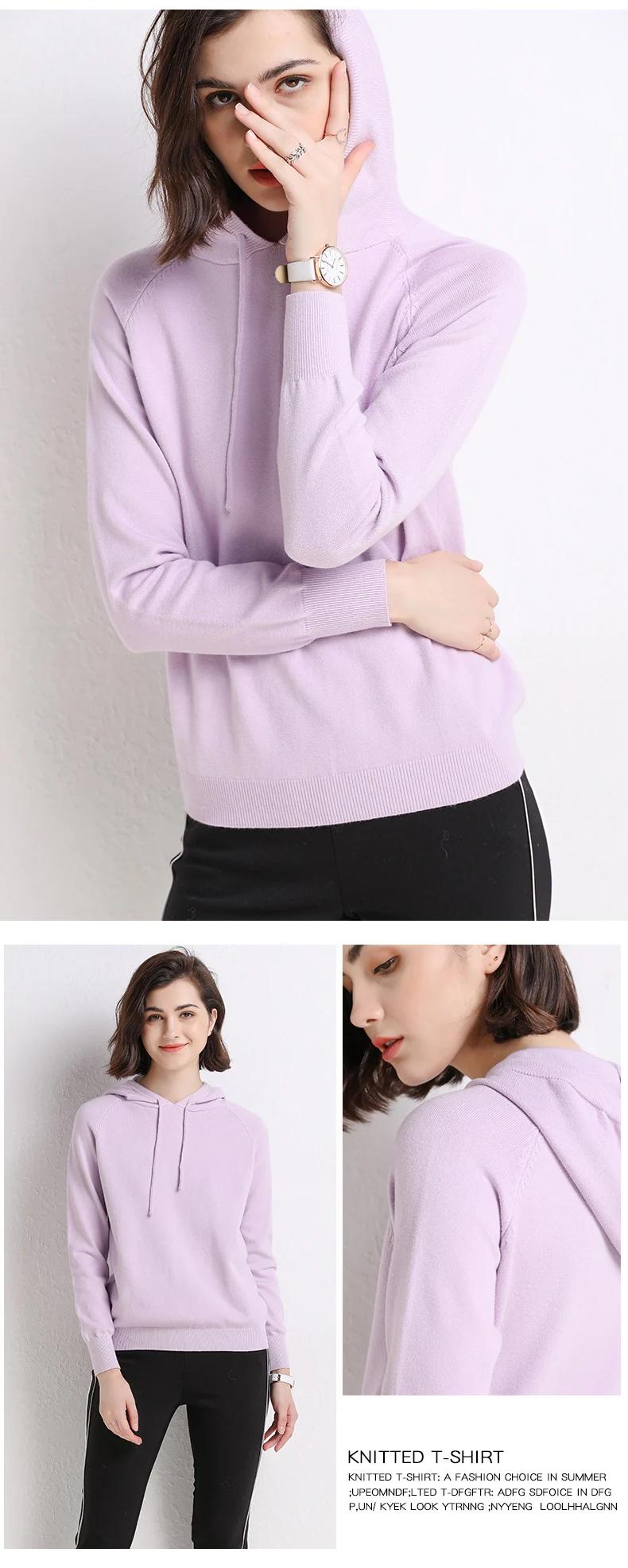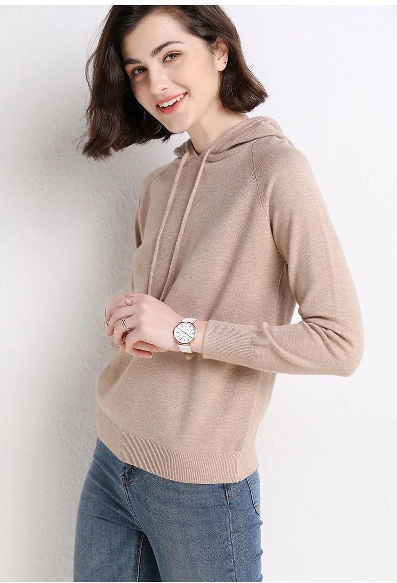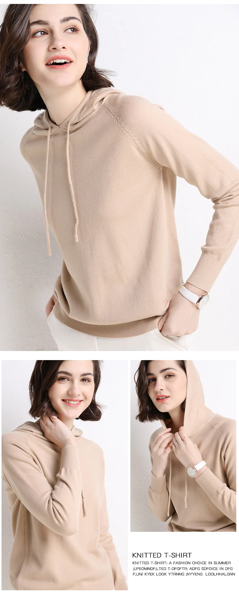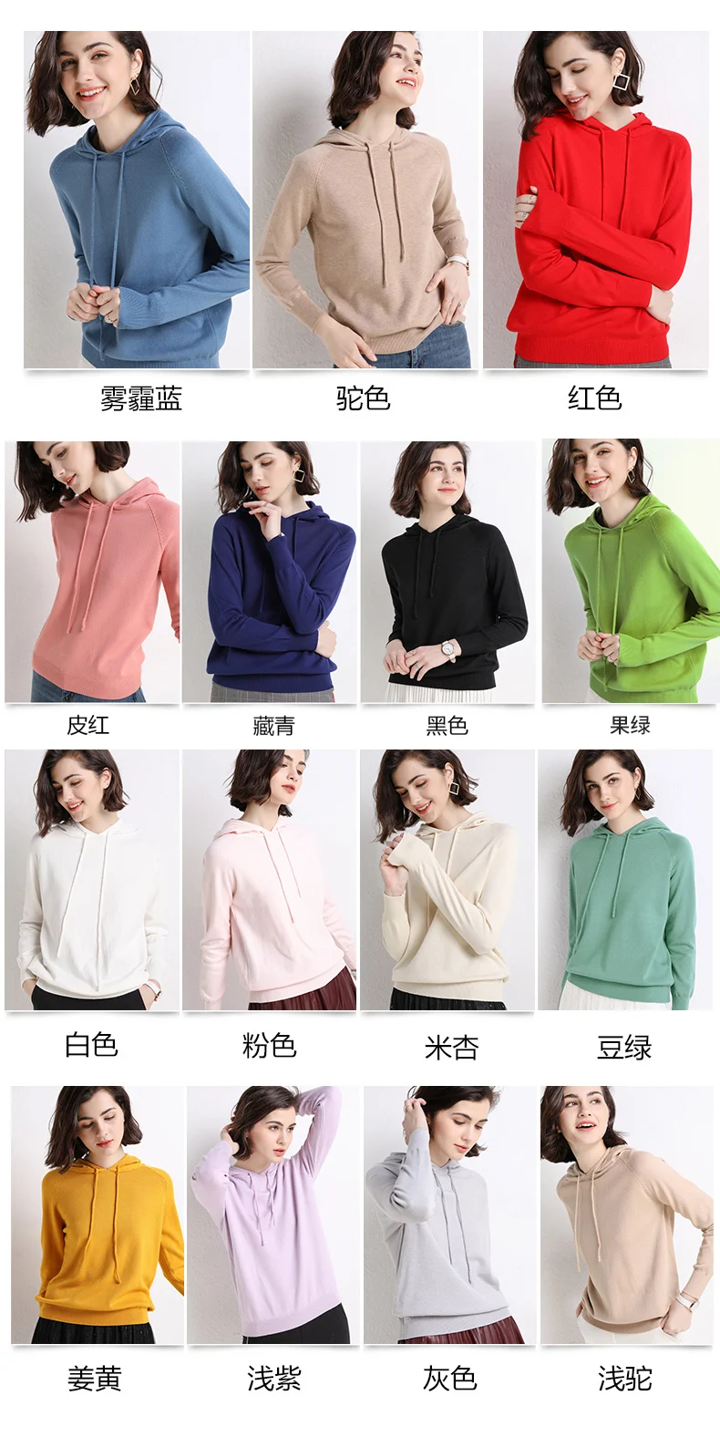 High Quality New Spring Autumn Winter Women Cashmere Knit Sweater Hooded Collar Pullovers Solid Color Sport Soft Casual Loose | Женская