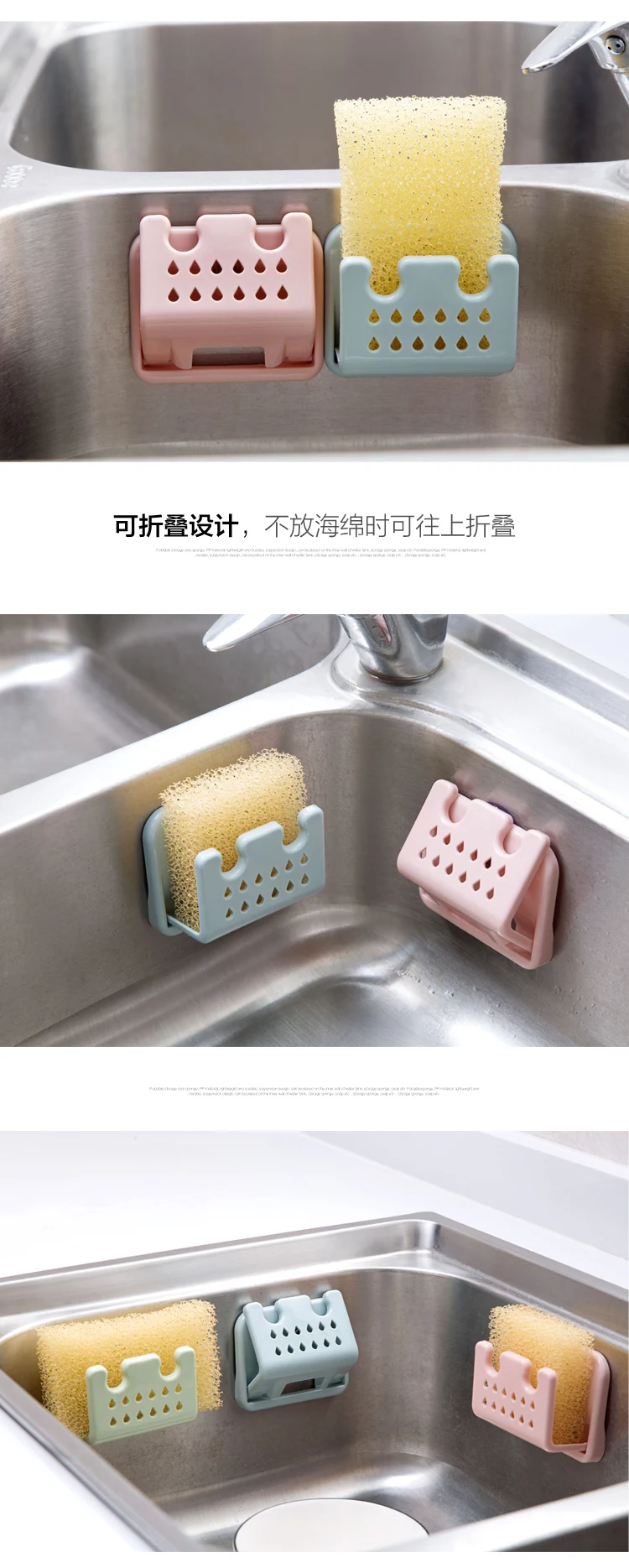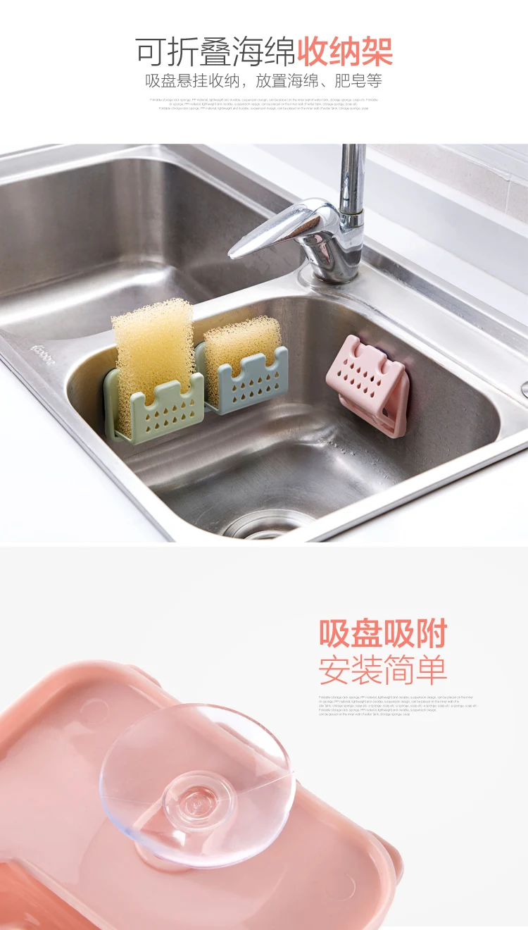 Краткое описание: складная стойка для хранения губок, материал PP, легкий и прочный, подвесной дизайн, может быть помещен на внутренней стене раковины, содержащий губку, мыло и так далее.
