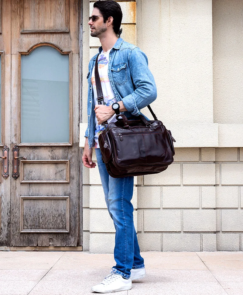 Используется для Brifcase, сумки, сумки через плечо/Кроссбоди [Материал]: 100% Натуральная Воловья кожа [Цвет]: коричневый/черный [Стиль]: сумка, сумка на одно плечо [Размер]: 40,5 см (длина) x 18 см (ширина) x 32 см (высота) Ёмкость: подходит для 15,6 дюймов ноутбука