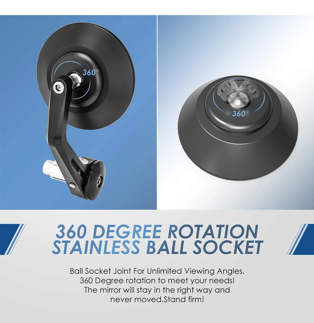 1. Абсолютно новые высококачественные торцевые зеркала с розничной коробкой 2. Количество: 1 комплект (слева и справа) 3. Корпус: 6061 CNC обработанный алюминий с черной отделкой 4. Зеркало: стекло 5. Поставляется с 13 мм-18 мм концевой втулкой или непосредственно зажимом 6. Регулируемый угол зеркала, вверх и вниз, влево и вправо