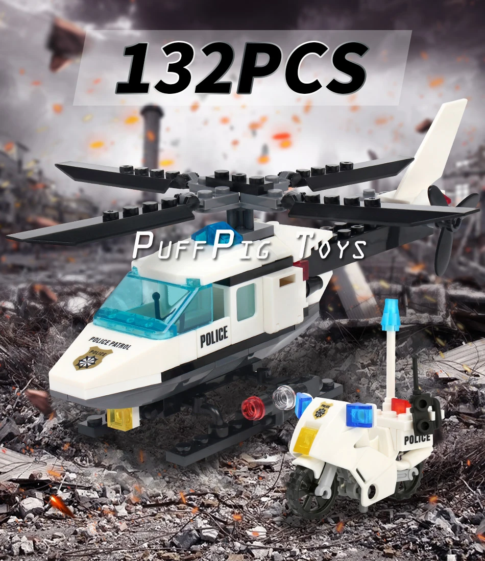 Вертолет городской полиции ВВС самолет мотоцикл строительные блоки военный развивающий подарок игрушки ребенок