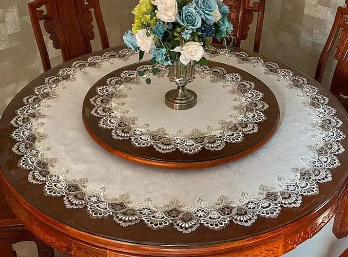Европейская кружевная атласная круглая скатерть, 2 цвета, вышивка, покрытие для обеденного стола, ткань, кухонная салфетка-подставка, рождественские вечерние свадебные украшения