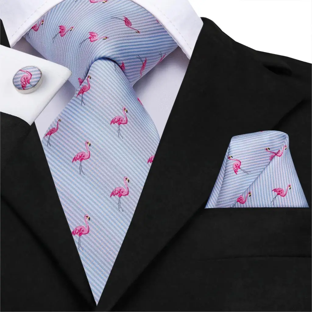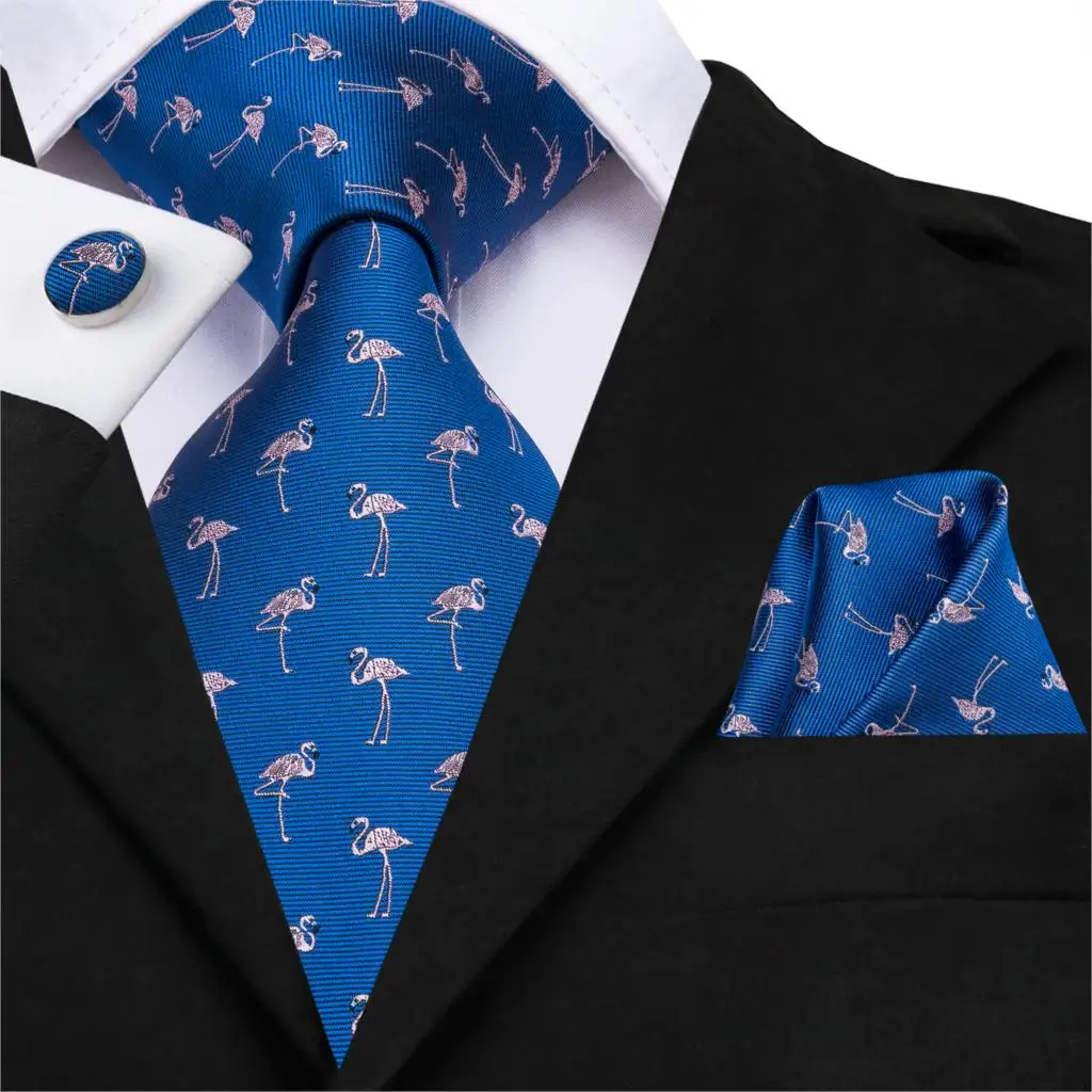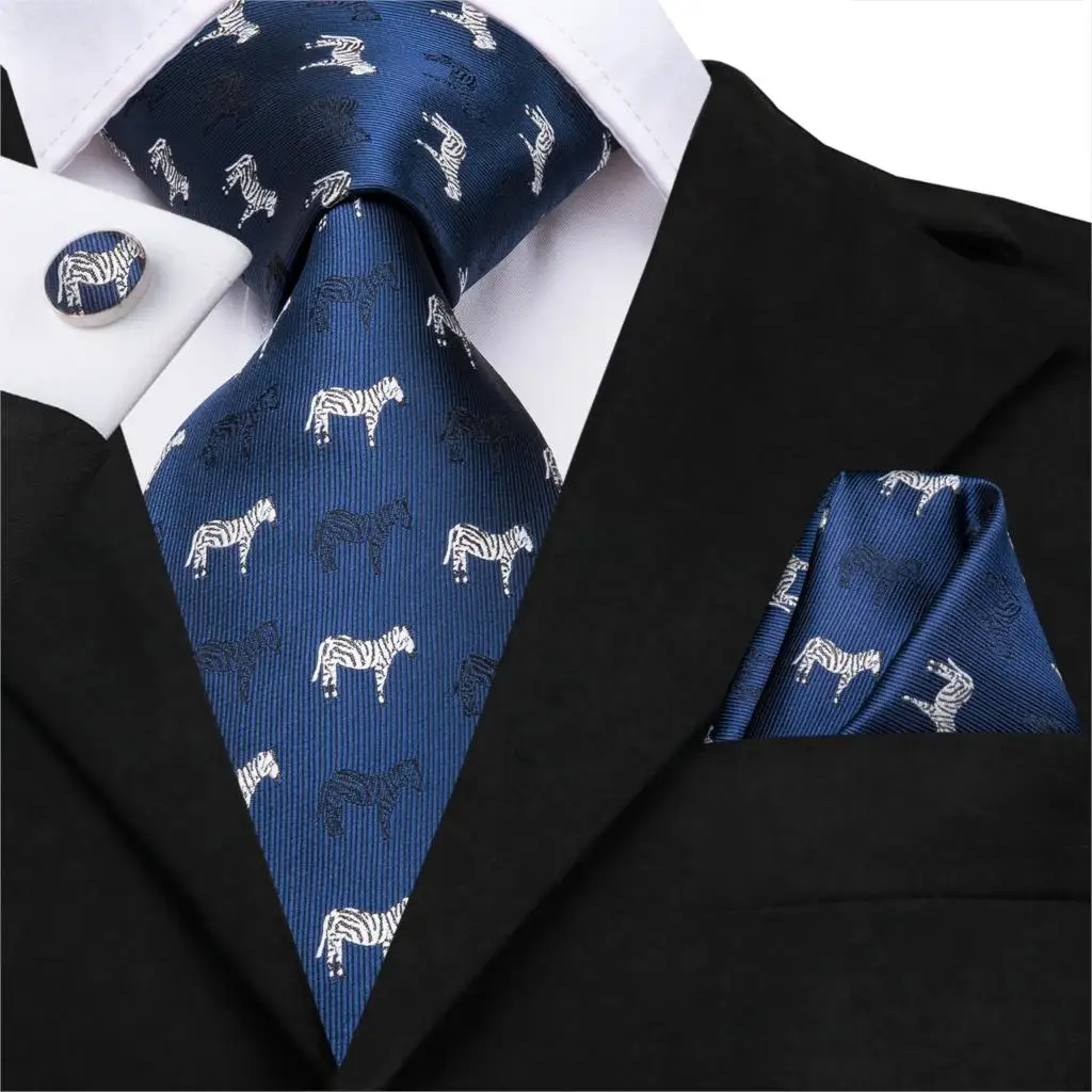 Hi-Tie Blue Animal Tie Silk 3.4" Wide Necktie and Pocket Square Set Wedding Party Fashion Male Tie Set for Men 8.5cm SN-3038