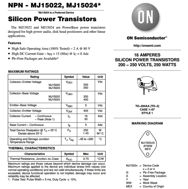 MJE15024 MJE15025 усилитель класса A X1 шт