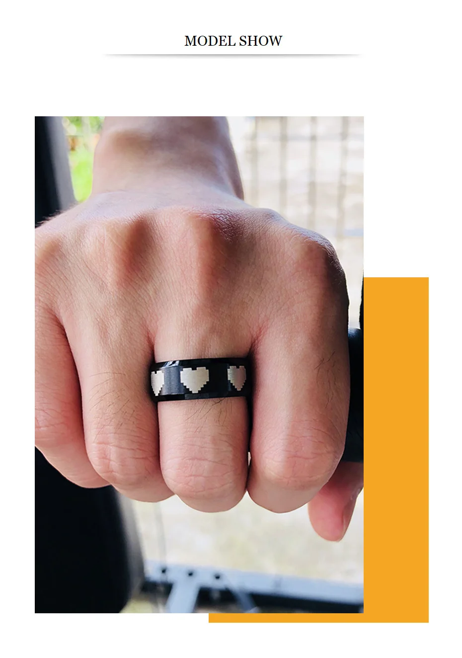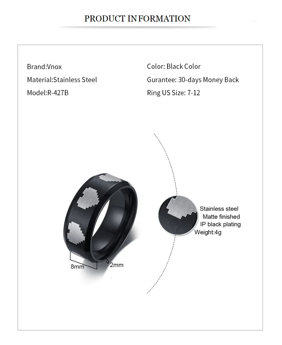 Vnox Heartbeat Wedding Rings for Men 8MM Black Stainless Steel Promise Love Alliance Gifts |