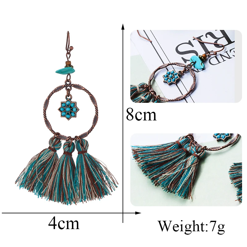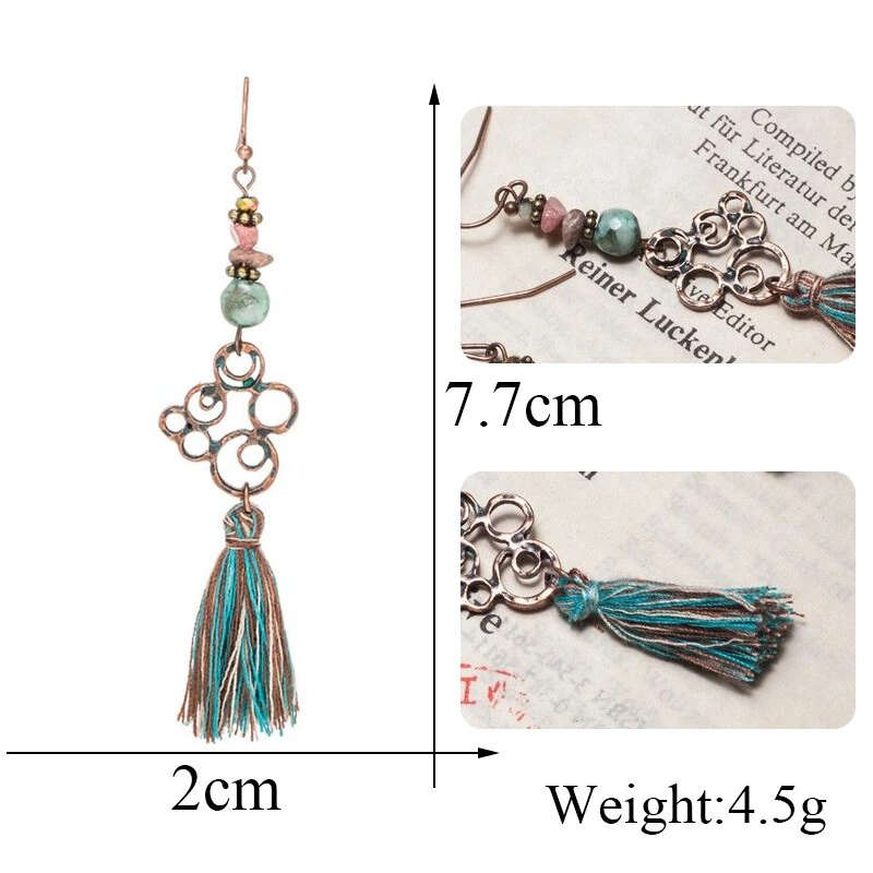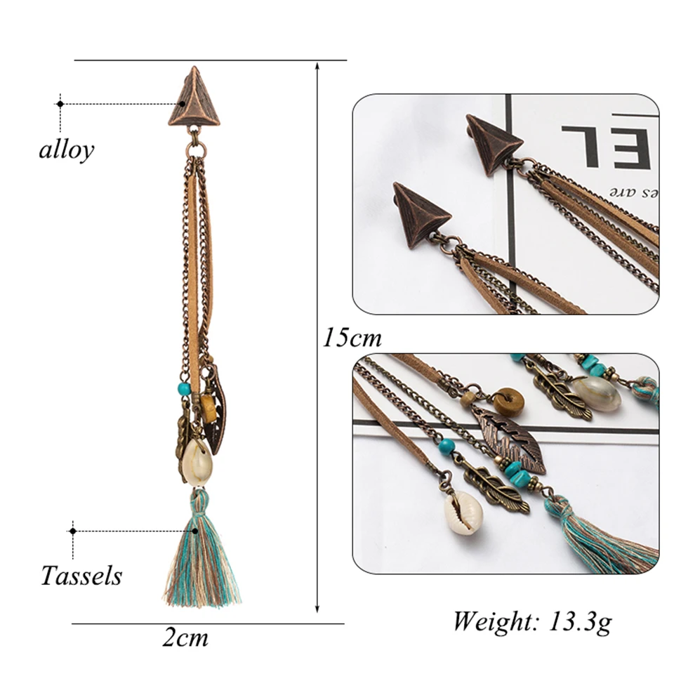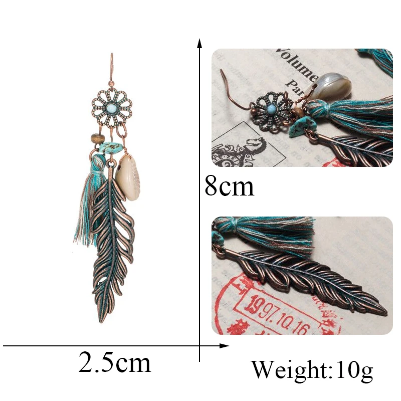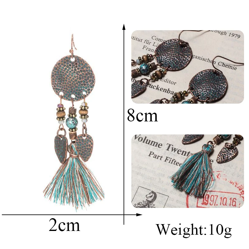 Новинка 2019, богемные серьги с длинной бахромой, этнические геометрической формы, в стиле бохо, металлические листья, зеленые кисточки, серьги-капли мечты, пляжные ювелирные изделия