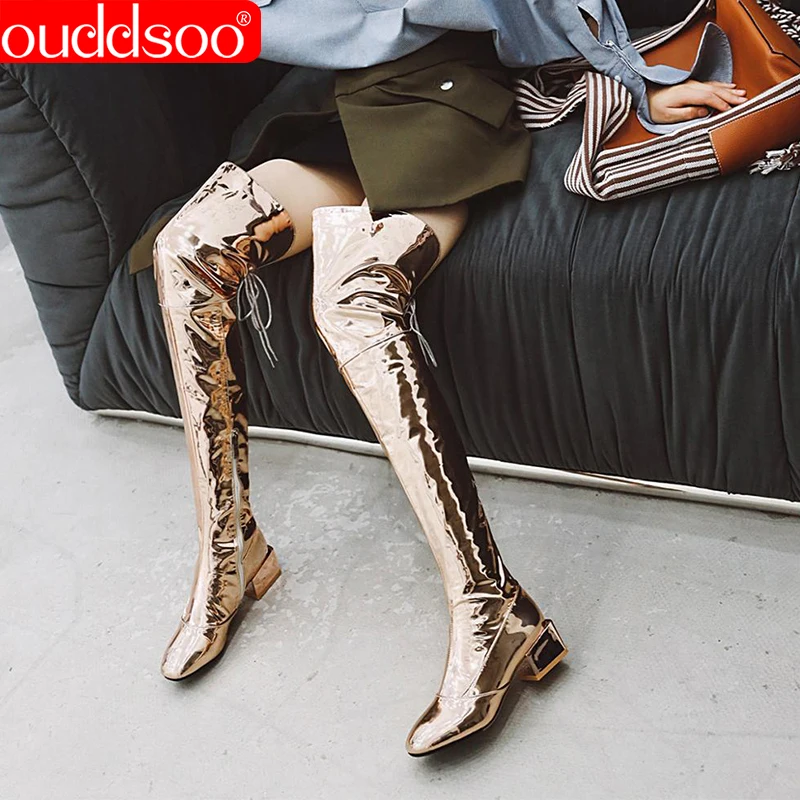 Панк кроссовки для женщин на шнуровке растягивающиеся Сапоги выше колена