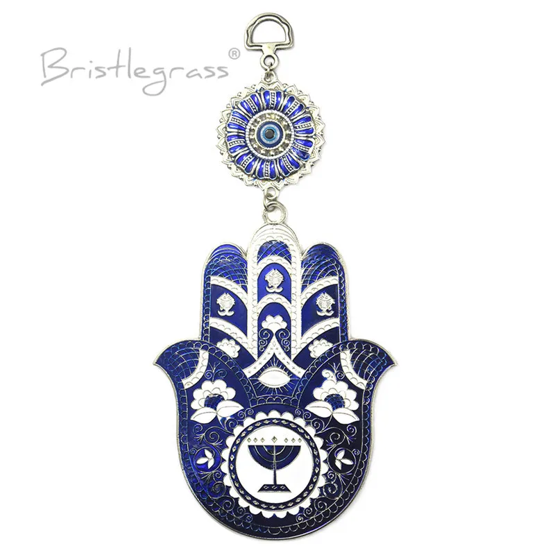 BRISTLEGRASS турецкий синий сглаза рука Фатимы в виде вьющегося стебля с цветами на стене подвеска, амулет, с надписью "Lucky Charm" Благословение защита домашнего декора