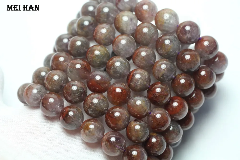 Natural 13-14 mm rare Auralite 23 quartz purple red smooth round beads