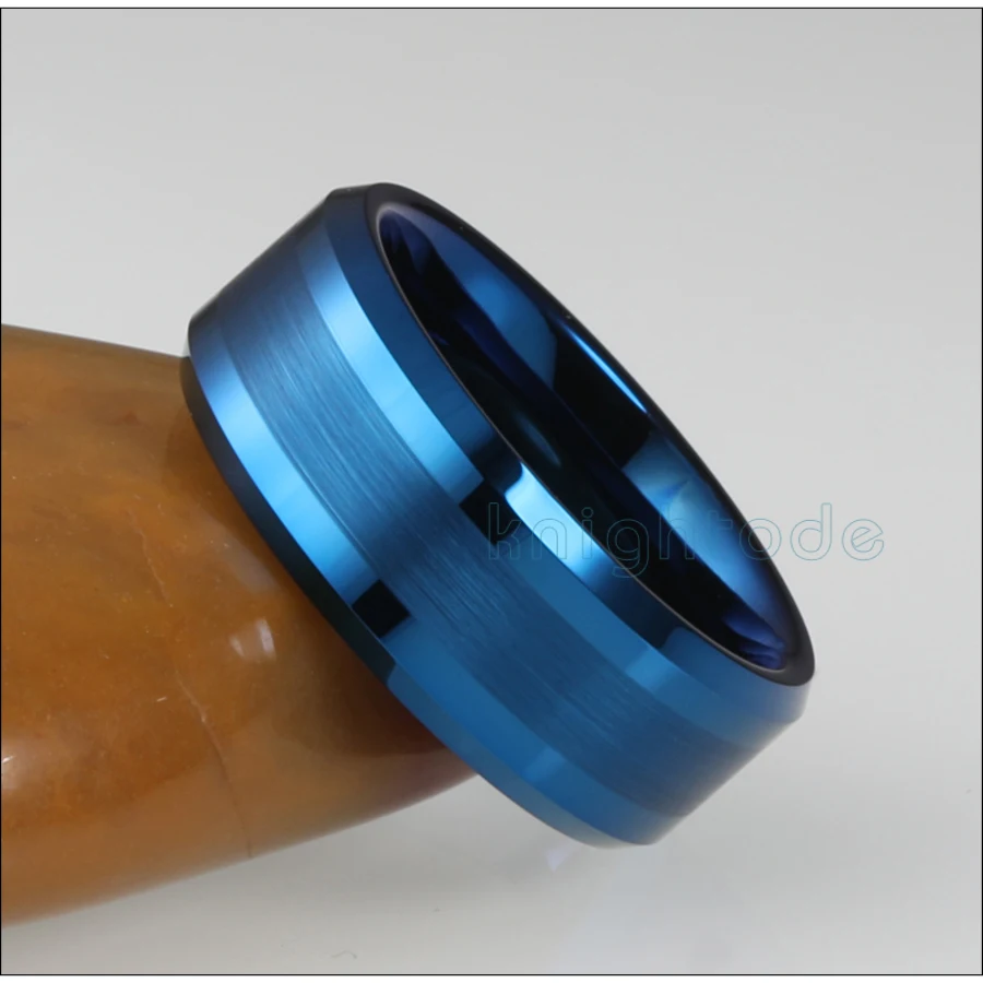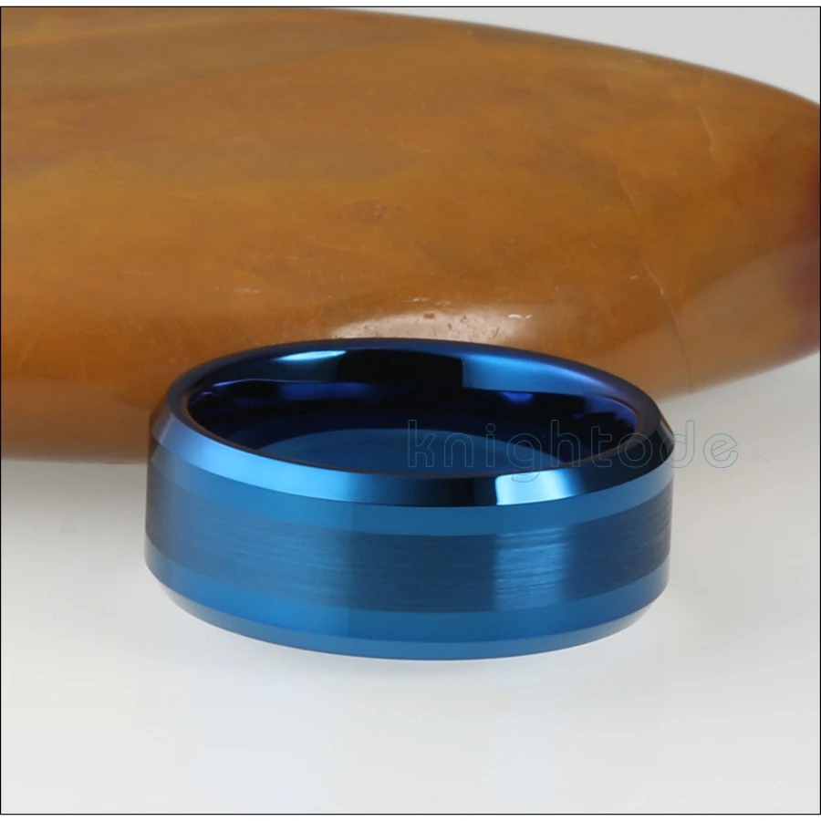 8 мм Синий вольфрамовое кольцо скошенные края полированные/матовый