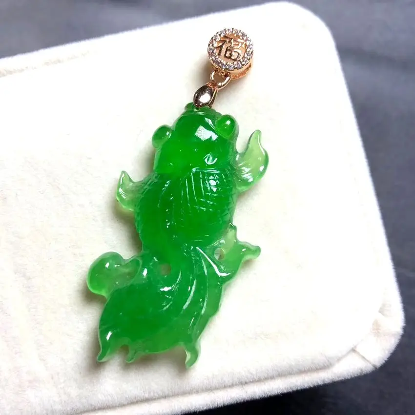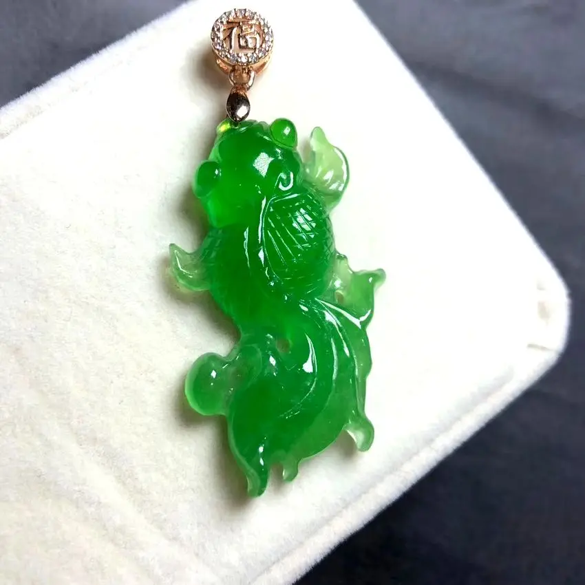 Красивый зеленый Jade jasper кулон Изумрудный драгоценный камень Золотая рыбка амулет очень счастливый талисман