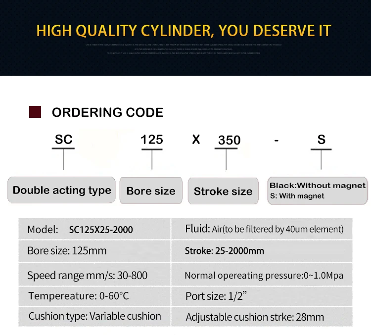 Стандартный цилиндр Sc является наиболее часто используемым цилиндром с тяговым стержнем, который имеет преимущества превосходной производительности, легкой замены и низкой цены.