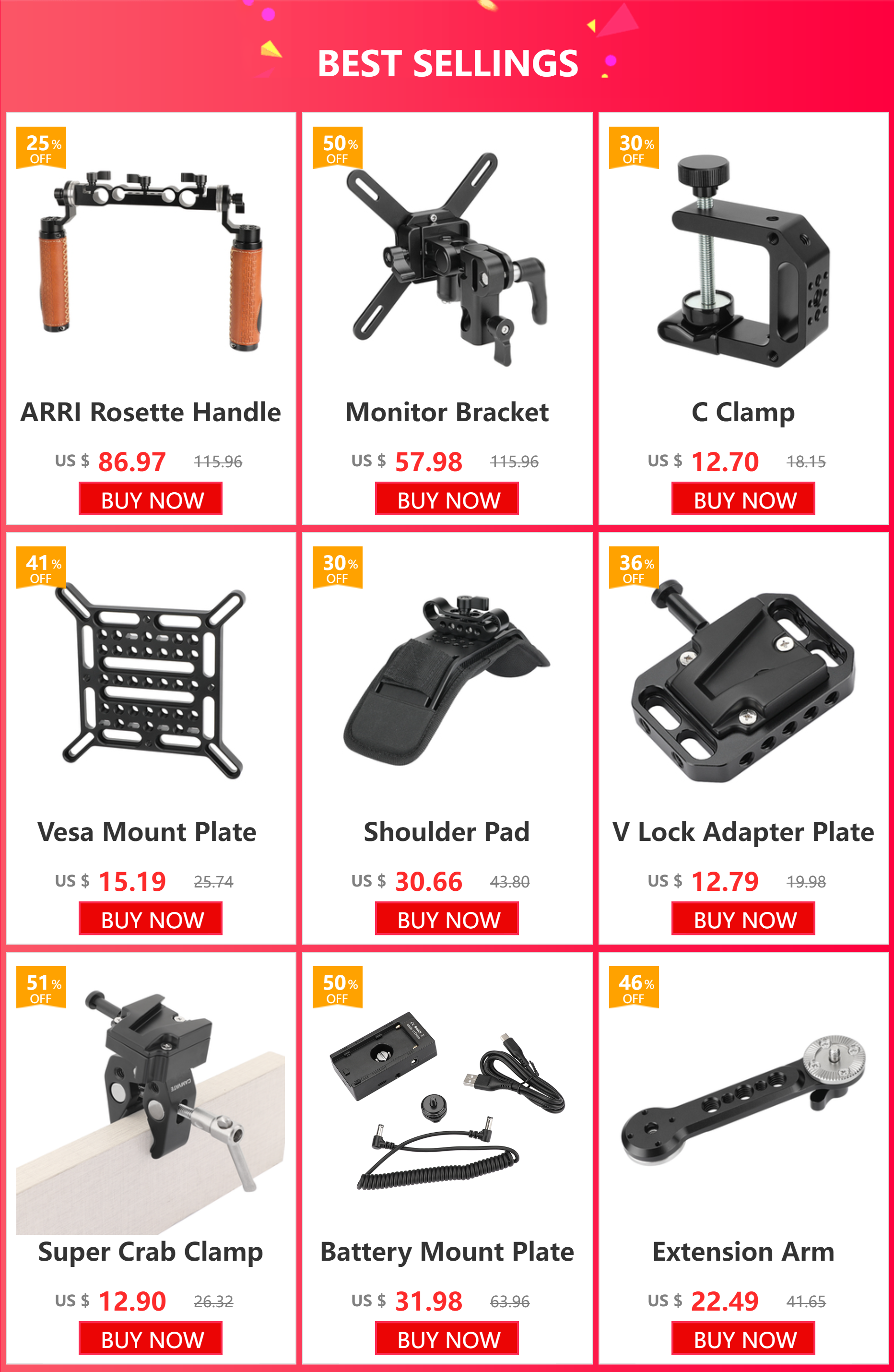 • In addition, the mounting cheese plate attaching to the rod, and the handgrips with rod clamp connectors could be adjusted horizontally in different positions for easy use and comfortable holding.