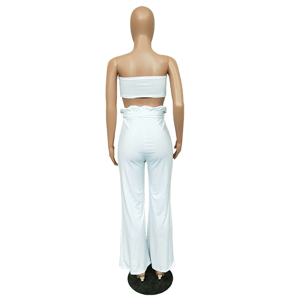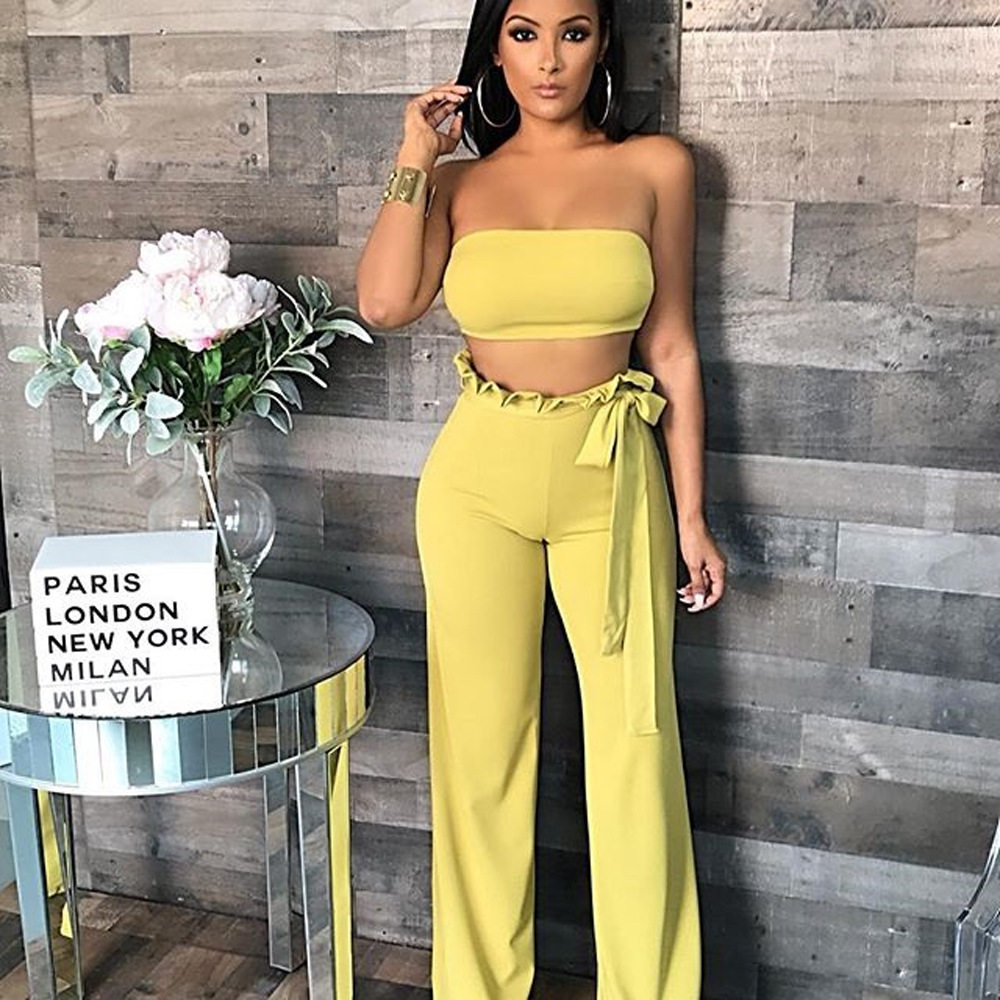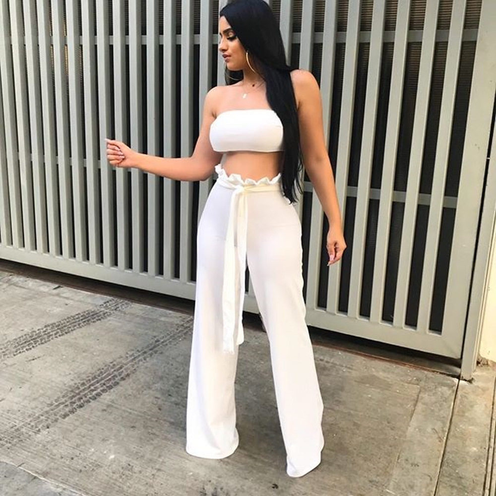 Женский сексуальный комплект из двух предметов: Топ без бретелек и брюки, комплект из 2 предметов: широкие брюки с оборками, комплект одежды из 2 предметов DW651 <