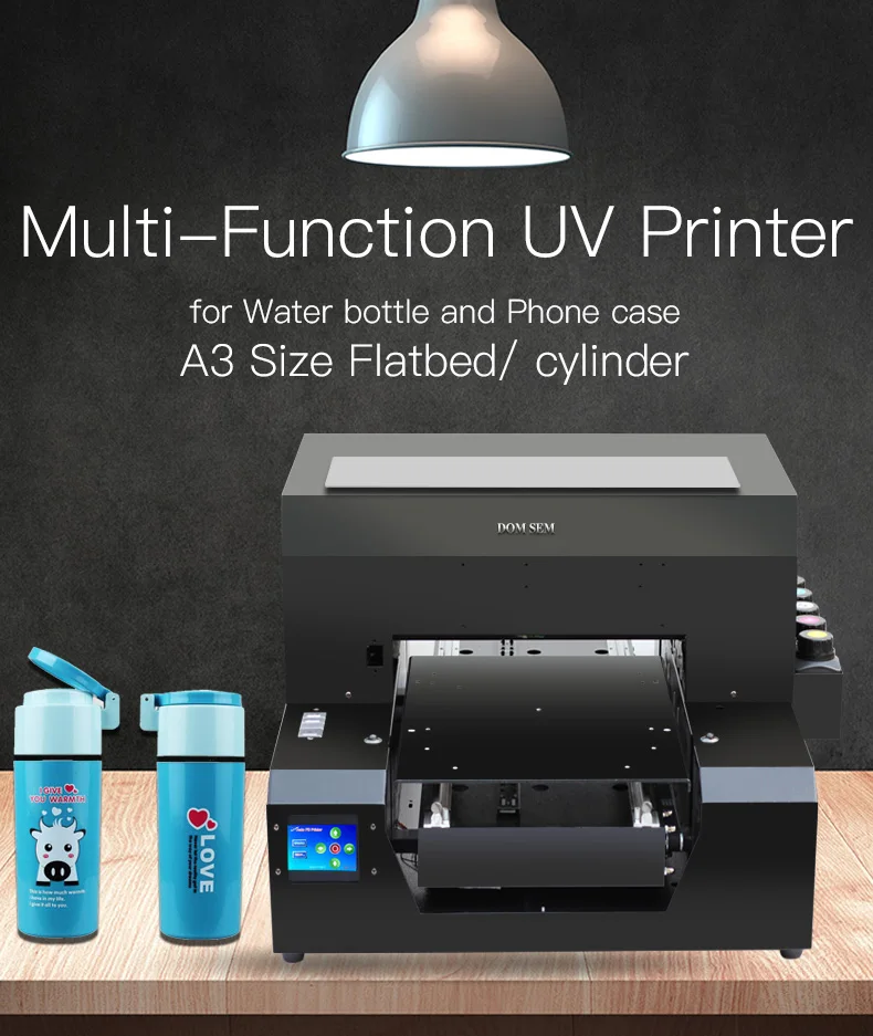 A3 UV планшетный принтер является идеальным решением для DIY пользовательской печати на продуктах, который является многофункциональным светодиодным УФ-планшетным принтером, который создан DOMSEM и был создан с промышленной конфигурацией, как утолщенный алюминиевый профиль, система водяного охлаждения. Автоматическое обнаружение УФ системы, 6 видов цветов и max 2880 точек/дюйм разрешение печати. Может печатать на всех видах поверхностей, доступных в 3D текстурированной и рельефной печати, подходит для печати как на жестком, так и на гибком материале, как цилиндр, трубка, бутылка, чехлы для телефонов, металл (алюминий, медь и т. Д.), сплавы, зеркало, подарочная упаковка (дерево, углеродная бумага, металл), чехол для планшета, Usb-флешки, dvd-диски, промышленные знаки, значки, пластиковые карты, ПВХ, стекло, дерево, бумага и т. Д.