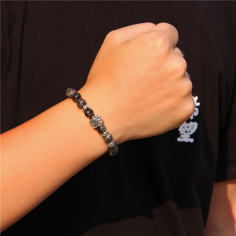 Men Bracelet Weathering Agates Bracelets For Women Dog Paw Silver-platedCharm Bracelet Femme Nature Energy Stone Beads Pulsera Jewelry