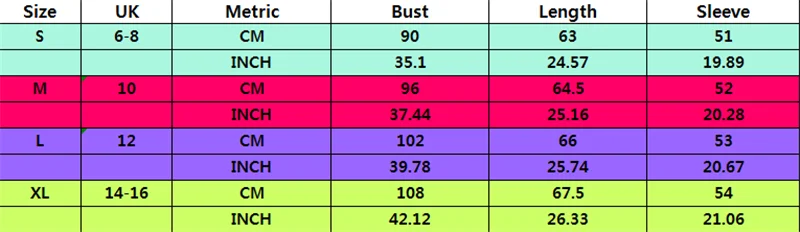 | Размер | Великобритания | Метрический | Бюст | Длина | Рукав |