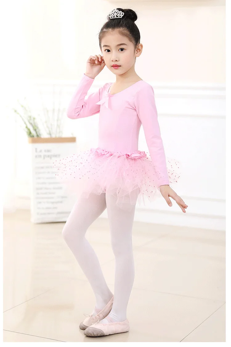 Новинка; Детская одежда для занятий танцами; Балетное платье; Хлопковое платье для девочек; Кружевная трикотажная юбка с длинными рукавами; Балетный танцевальный костюм для девочек