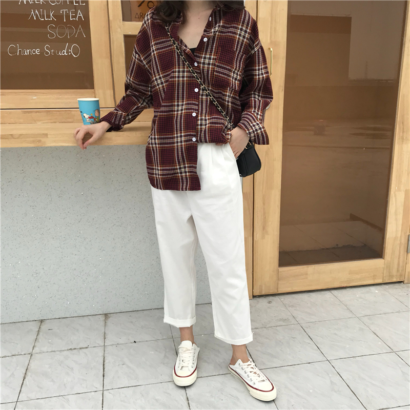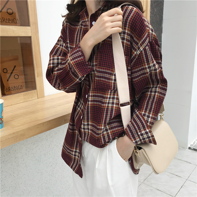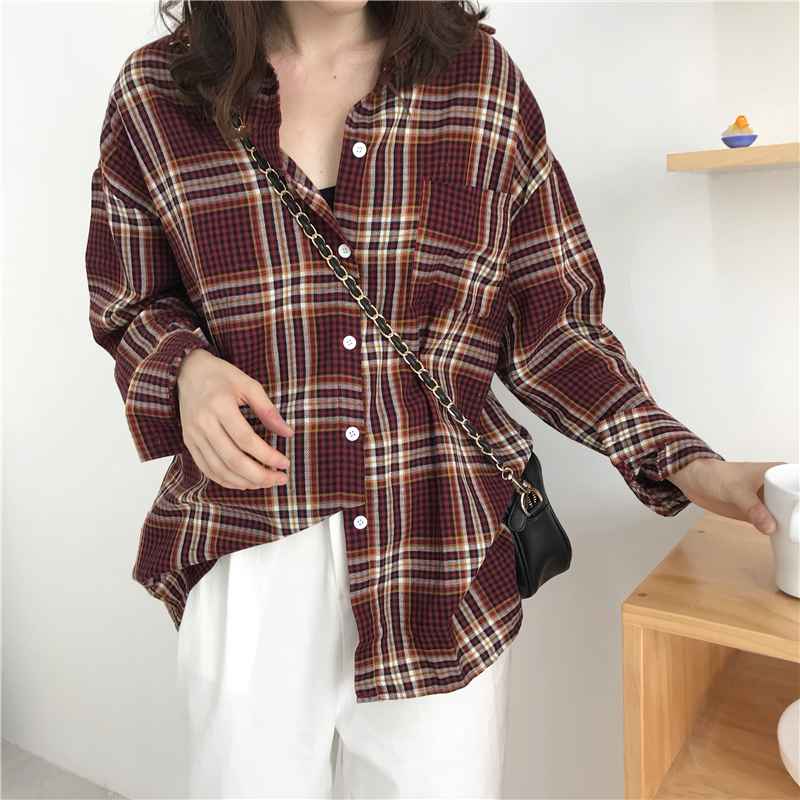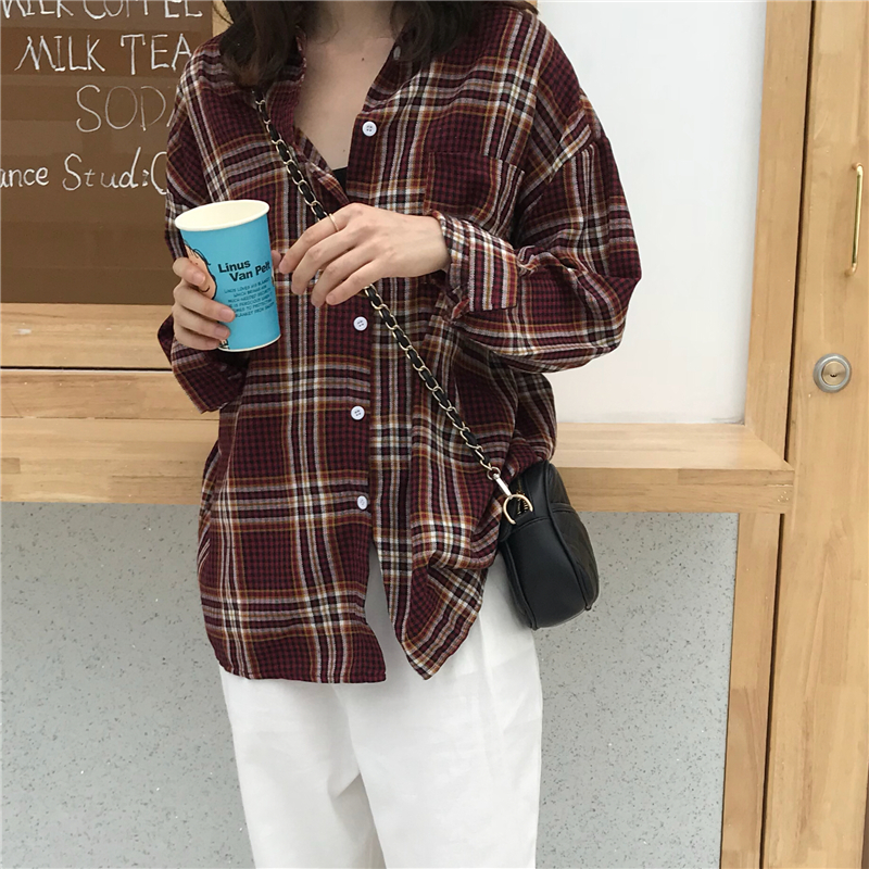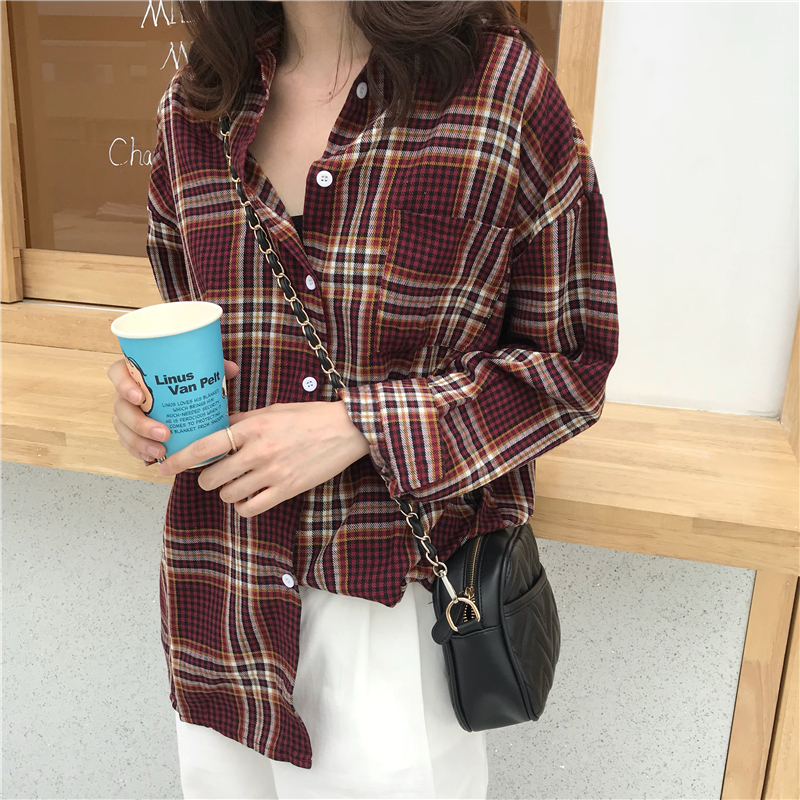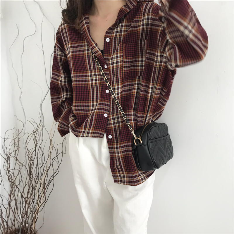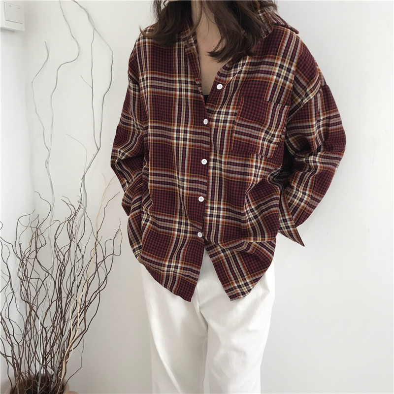 Осень 2018 г. harakuju клетчатая свободная винтажная рубашка с длинными рукавами женская блузка