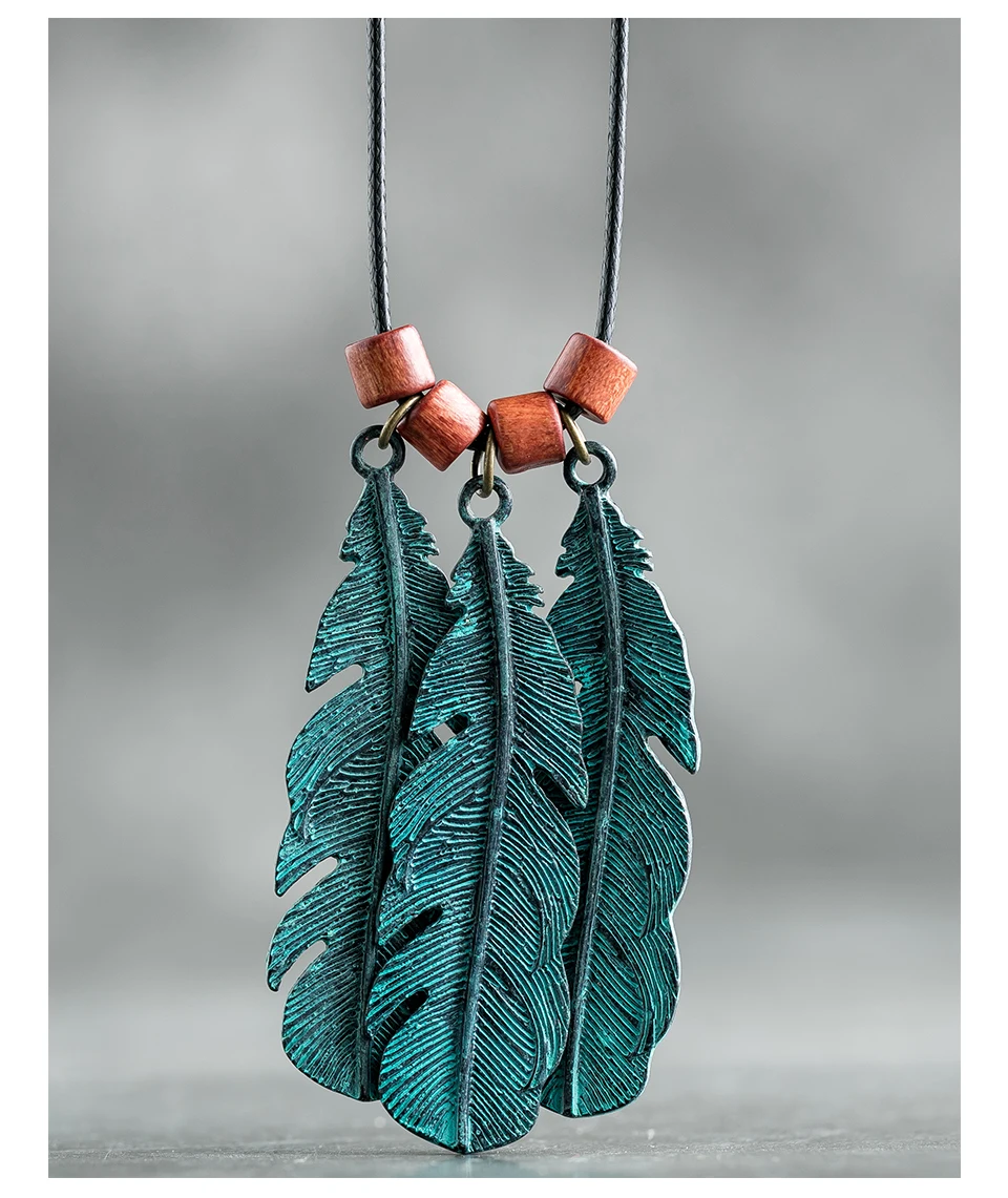 Ожерелье из красного бисера, модное ювелирное изделие с узором из перьев, женские винтажные Подвески с длинной подвеской для женщин, аксессуары