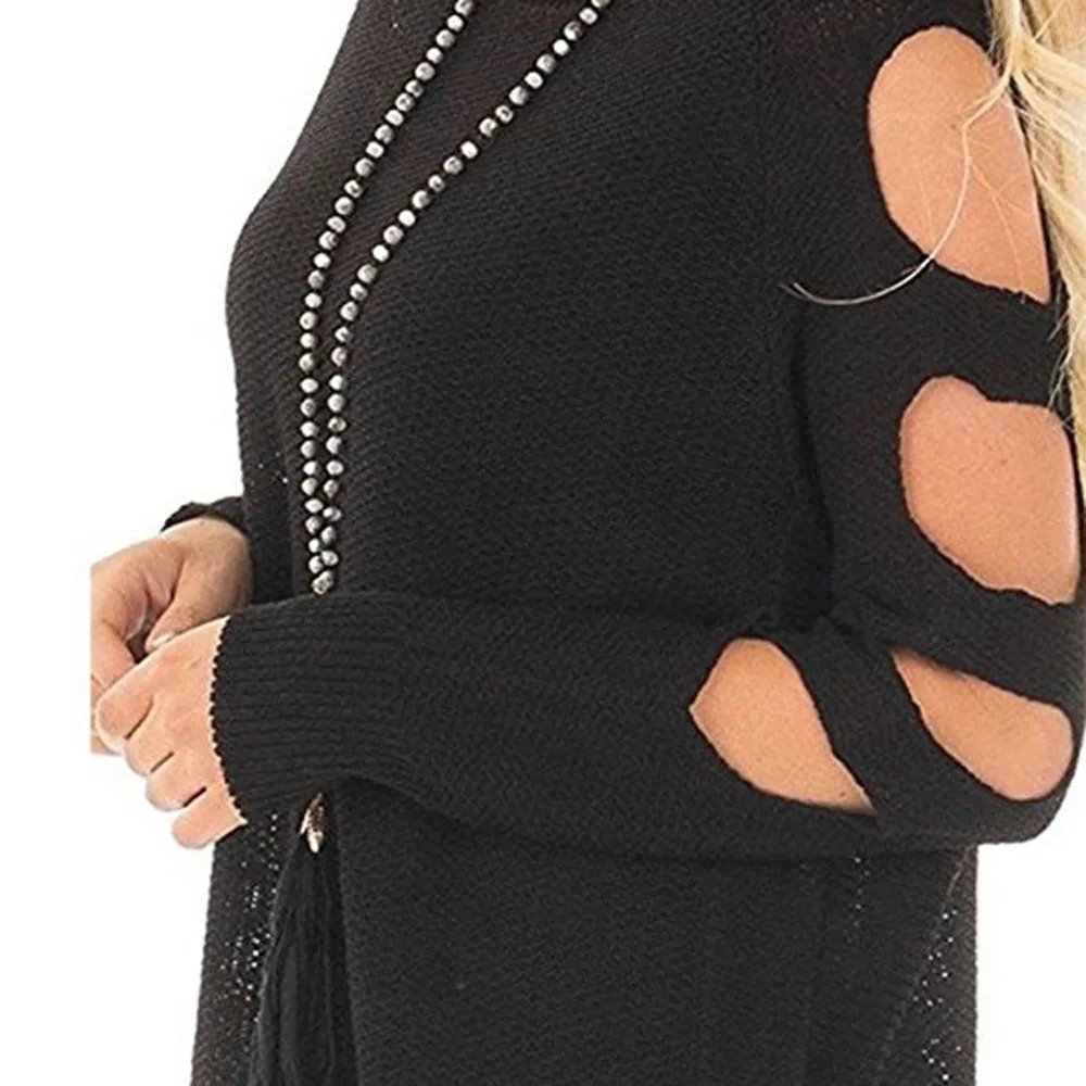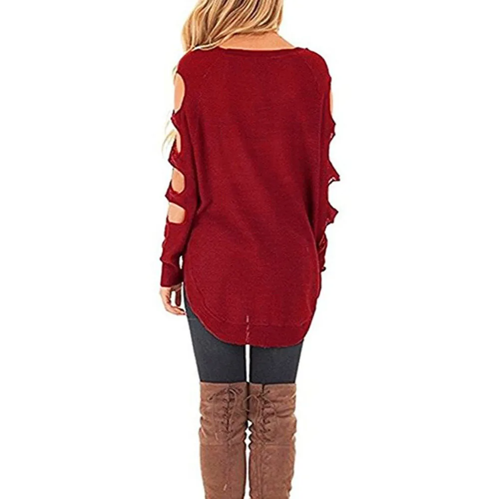 Вязаный свитер с повседневным дизайном, украшенным женским шармом, круглым вырезом и полыми рукавами, на ощупь, очень Повседневный и элегантный.