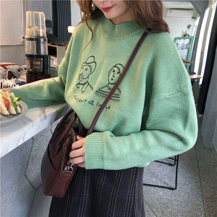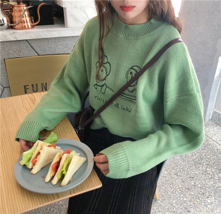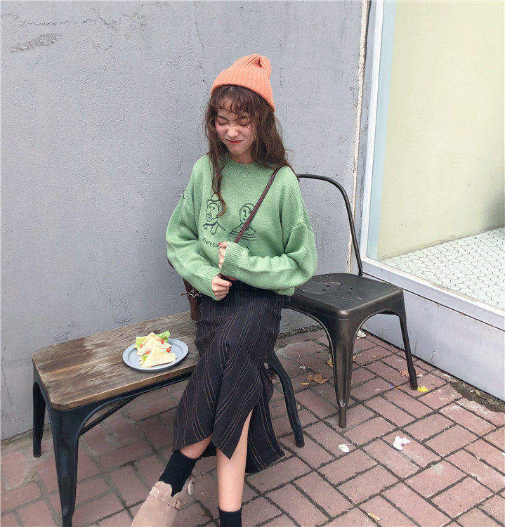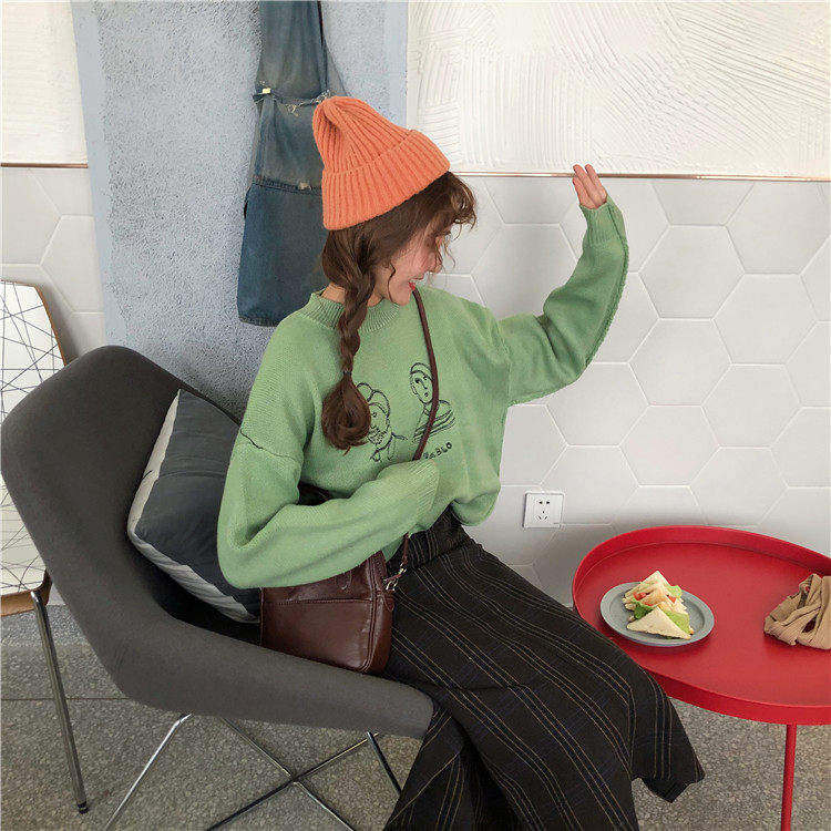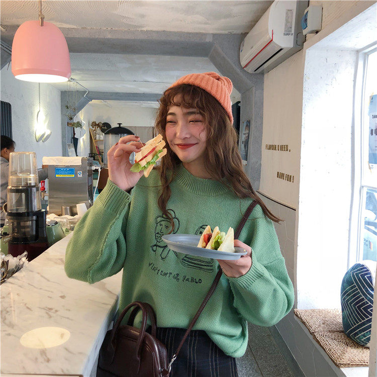 2018 осень и зима корейский шикарный стиль забавные мультяшные буквы толстые свитера женские свитера и пуловеры для женщин