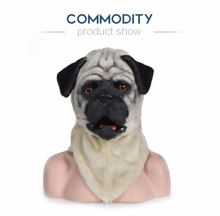 "Хеллоуин Masqurade костюм милая мопса маска для лица Реалистичная маска для головы животных"