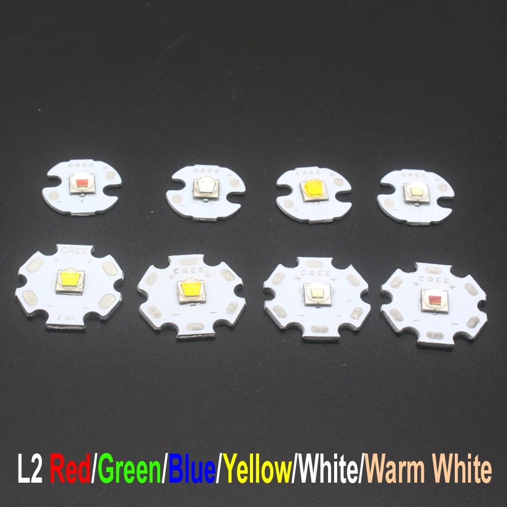 XLamp XM-L2 Highest-Performing, Commercially Available, Single-Die LED Delivering breakthrough lumen output and efficacy in the XM package, the XLamp XM-L2 LED is the highest-performing, commercially available, single-die LED. Built on the SC⊃3; Technology Platform, the XLamp XM-L2 LED delivers up to 20% more lumens and lumens-per-watt and double the lumens-per-dollar of the original XM-L. The XM-L2 LED offers the unique combination of high efficacy and high lumen output at high drive currents, delivering an unprecedented 1198 lumens at 116 lumens-per-watt efficacy at 3 A, 25°C. Features:Maximam drive current: 3000mALow thermal resistance: 2.5C/WMaximum junction temperature: 150CViewing angle: 125'ANSI-compatible chromaticity binsUnlimited floor life at <30C/85% RHReflow solderable-JEDES J-STD-020CElectrically neutral thermal path Technical Parameters:Quantity:1pcsModel Type: Cree XML2-T6Emitted Color :Cold White/Neutral White/Warm White/ Red/Green/Blue/UV/Pink/Lake Blue/Golden Yellow Color Temperature: 6500K/4500K/3000K/ 620-630nm/520-530nm/450-455nm/395-400nmDC Forward Voltage (VF): 2.9-4VdcRed Color is 2.2-2.4VDC Forward Current (IF): 3.0APower: 10WLow thermal resistance: 2.5°C/WMaximum junction temperature: 150°CViewing angle: 125°Diameter :12mm/14mm/16mm/20mmANSI-compatible chromaticity binsUnlimited floor life at ≤ 30oC/85% RHReflow solderable - JEDEC J-STD-020CElectrically neutral thermal path